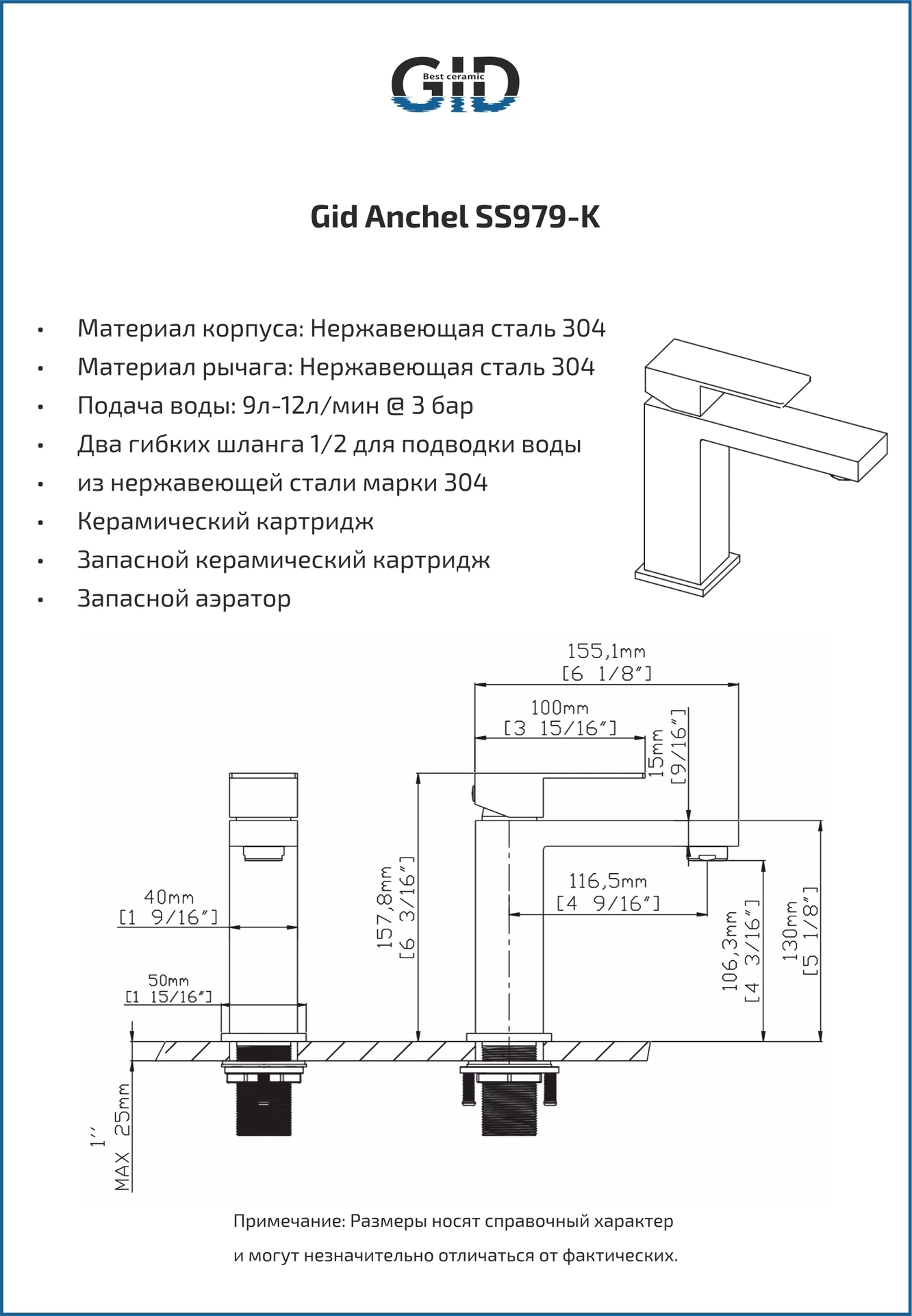 —Смеситель Gid Cascada SS979BMK на раковину черный