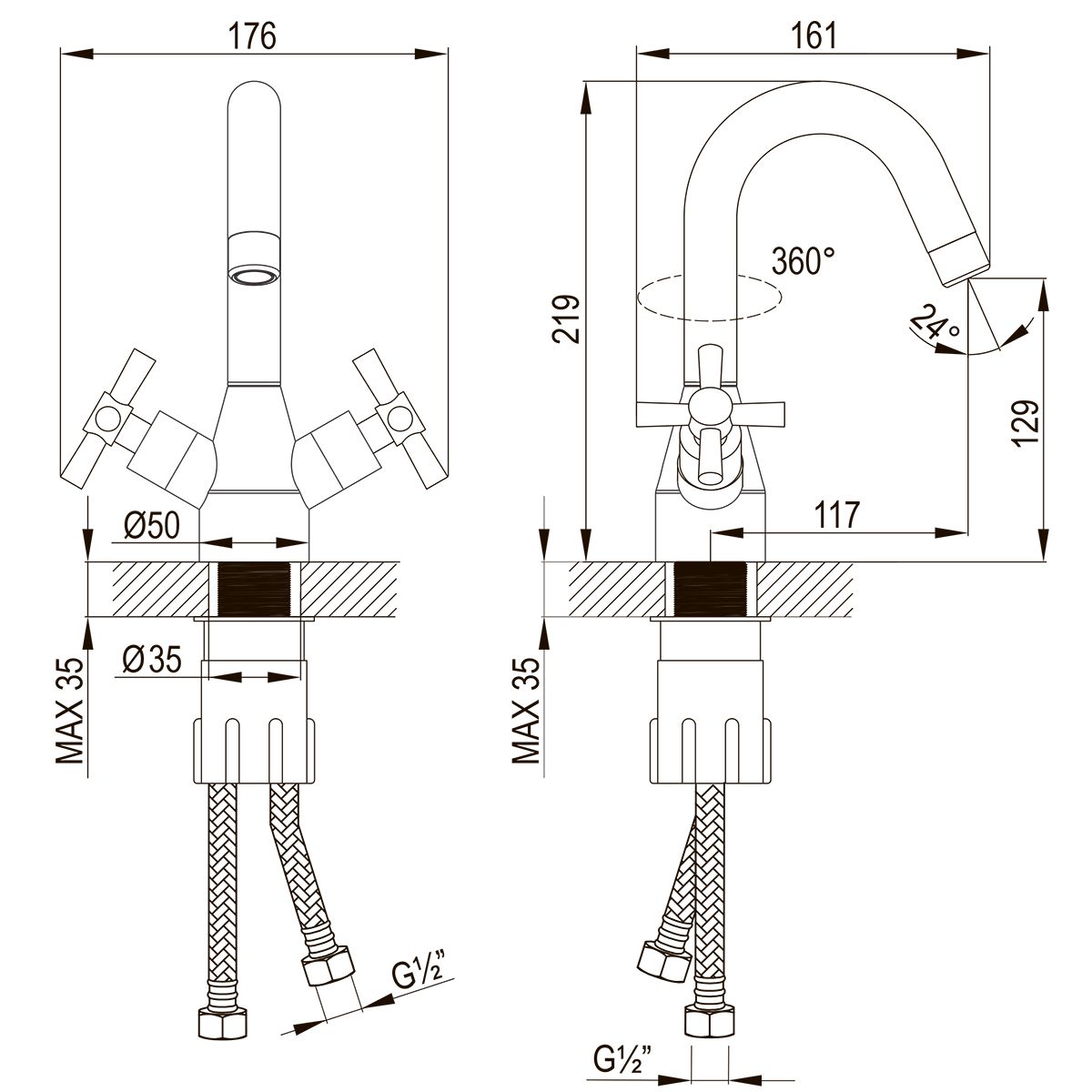 Смесители серии NEO  олицетворяют в себе новую форму элегантности. Комплектация:  Аэратор Neoperl<sup>®</sup> Cascade<sup>®</sup>, Кран-буксы с керамическими пластинами (угол поворота – 180 градусов), Гибкая подводка 1/2" 35 см, Металлические рукоятки