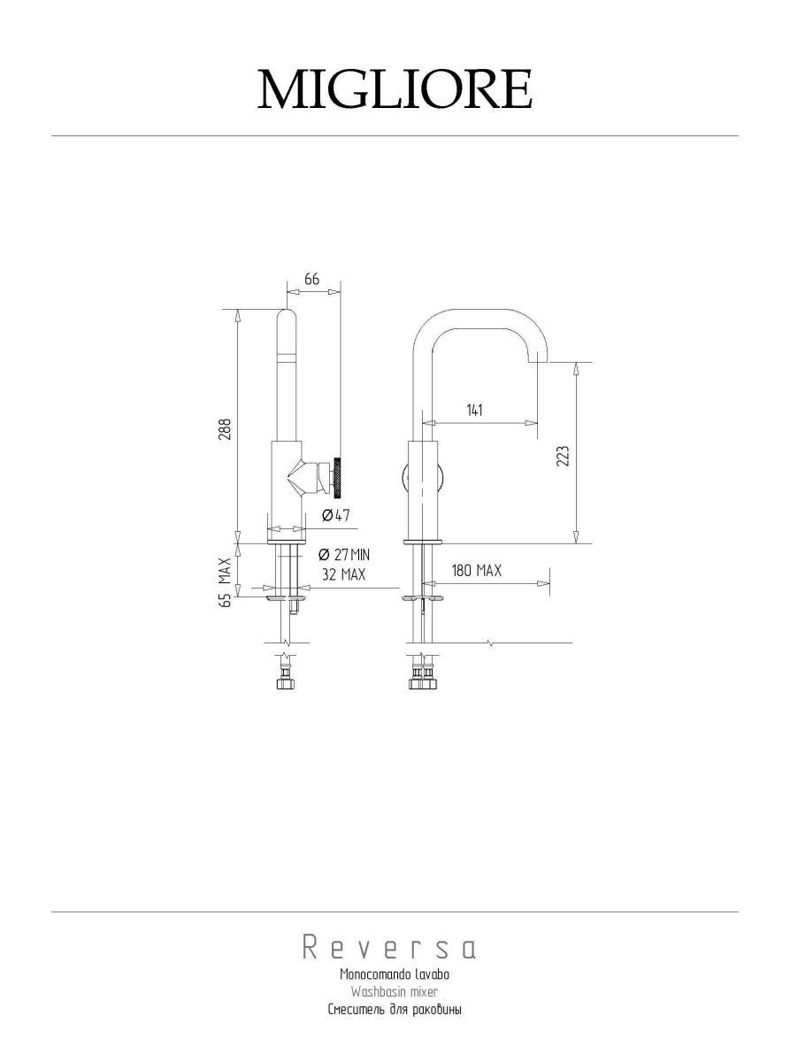 —Смеситель Migliore REVERSA 28207 на раковину золото