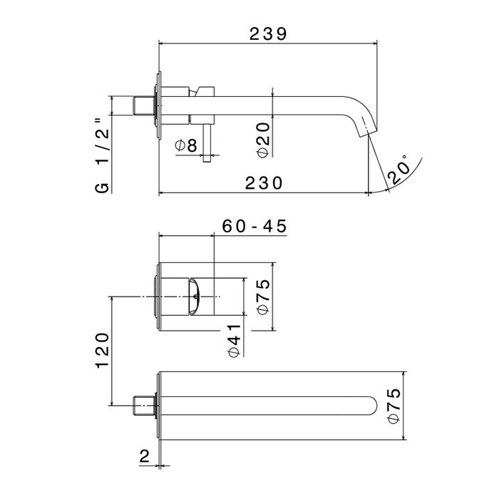 —Смеситель для раковины Newform X-STEEL 316 69630EX.50.050 встраиваемый в стену нержавеющая сталь