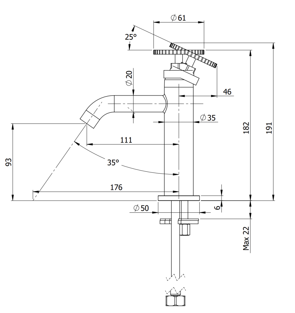Высота излива, см