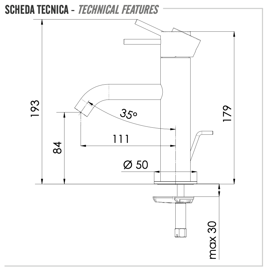 —Смеситель Remer X Style X10XV на раковину нержавеющая сталь