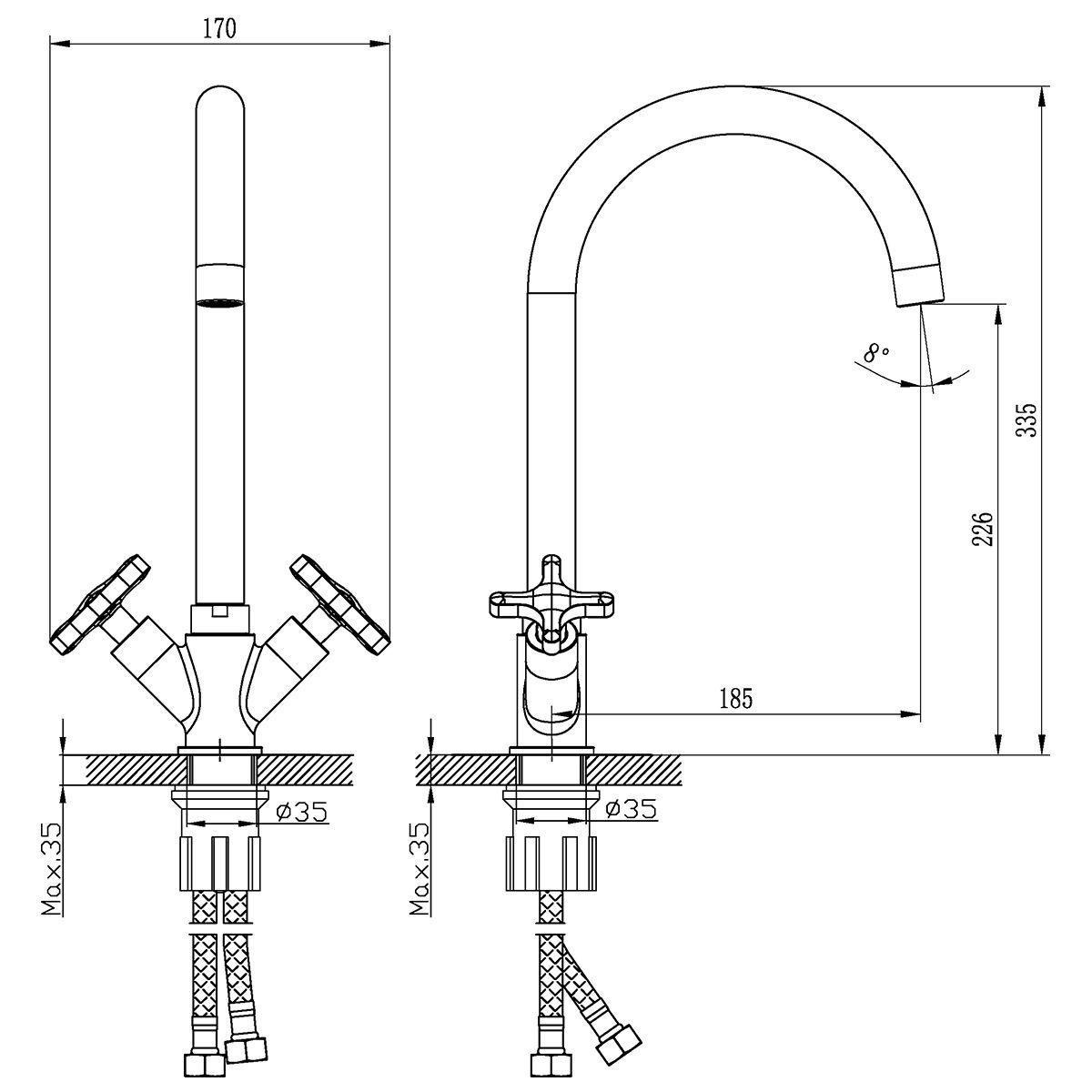 Высота излива, см