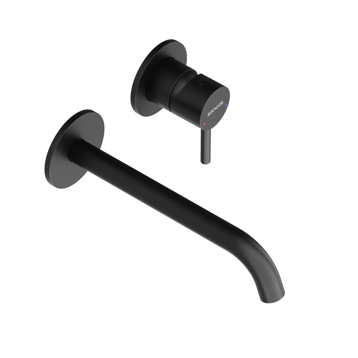 Встраиваемый в стену смеситель для раковины с внутренней частью из латуни;  Точная  регулировка температуры и напора воды с используемыми картриджами SEDAL (Испания); Мягкий поток воды без разбрызгивания  за счёт силиконовых аэраторов Neoperl®; Надежное покрытие  методом элетроплейтинга; Цвет матовый черный