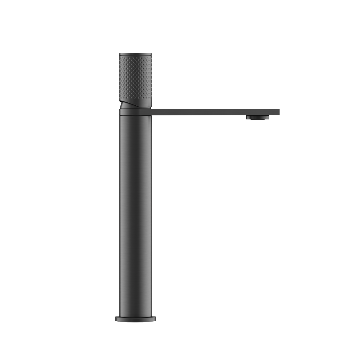 Смеситель высокий для раковины с рифленой ручкой управления; Надёжный корпус из прочной латуни; Точная  регулировка температуры и напора воды с используемыми картриджами  SEDAL;  мягкий поток воды без разбрызгивания  за счёт силиконовых аэраторов Neoperl®; Надежное покрытие  методом элетроплейтинга; Гибкая подводка в оплетке из нержавеющей стали, с  увеличенной длиной - 600 мм; цвет вороненая сталь