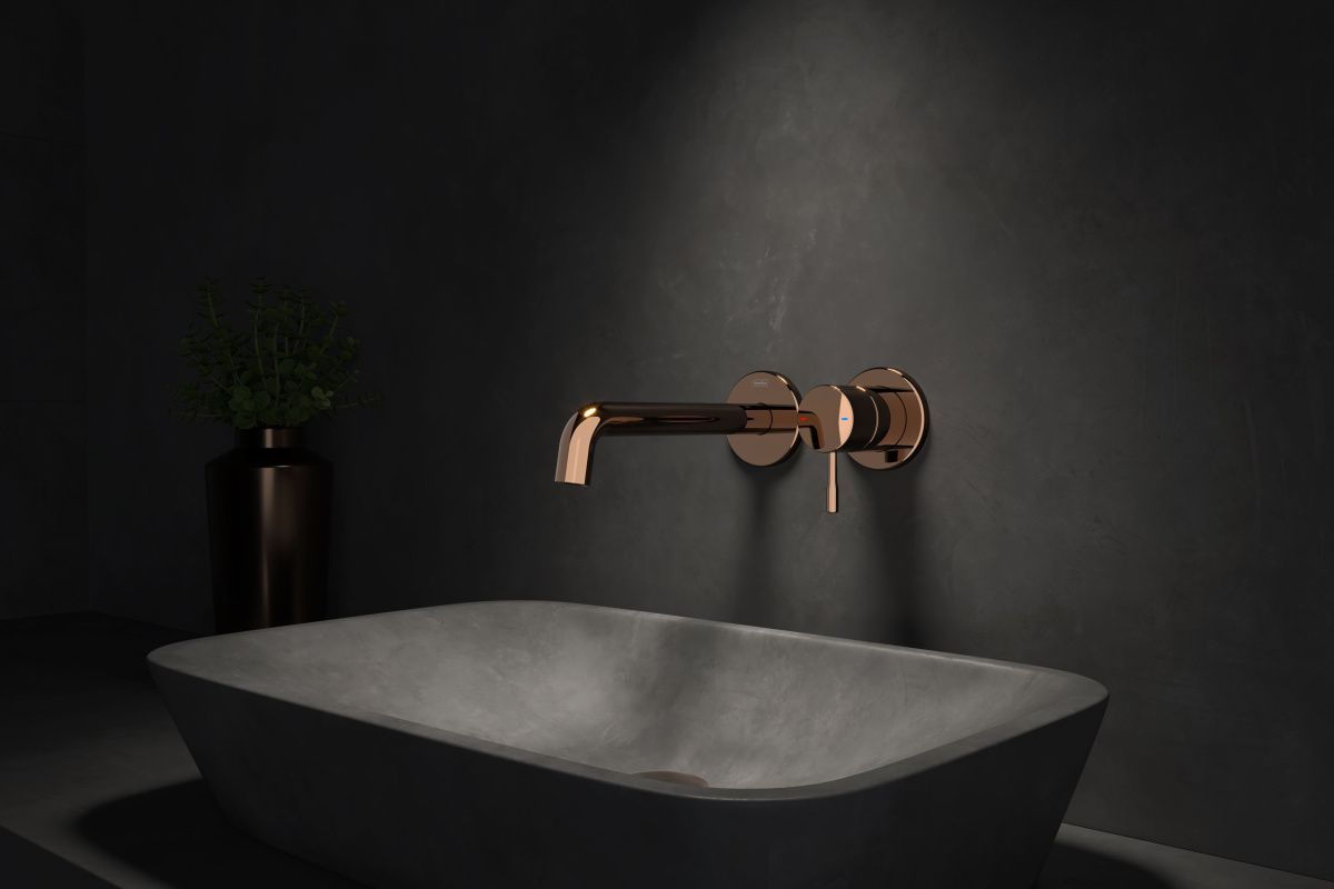 —Смеситель для раковины Teska ATLAS E5709 встраиваемый в стену розовое золото