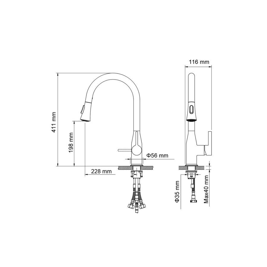 Черная сантехника становится все более популярной из-за способности расставлять акценты.Смеситель Timo Saona 2336 с выдвижной лейкой относится к премиальному сегменту, предназначен для монтажа на кухонную мойку или столешницу. Высокий излив подходит для моек с двумя чашами, а также позволяет справляться с мытьем габаритной посуды. Удобное (вертикальное) расположение рычага смесителя в крайнем положении "холодный старт", позволяет не задевать ручкой за стеновые панели, фартук, предметы, которые находятся за смесителем. Картридж с функцией "холодный старт" работает в диапазоне 90 градусов, рычаг установленный в исходное положение (вертикально) при открытии подает только холодную воду, а не 50% холодной воды плюс 50% горячей, позволяя экономить до 30% расход горячей воды. Для подачи горячей воды необходимо повернуть рычаг на себя. Выдвижная, двухрежимная лейка с прочным шлангом длинной 400мм облегчает мытье раковины, крупной посуды, позволяет набрать воду в емкость, стоящую рядом с мойкой. Встроенный магнитный держать позволяет легко вернуть лейку в исходное положение. Сложностей монтажа не возникает, при установке смесителя опытным сантехником. Внимательно изучите инструкцию по монтажу и эксплуатации.Черная сантехника требует бережного ухода.
