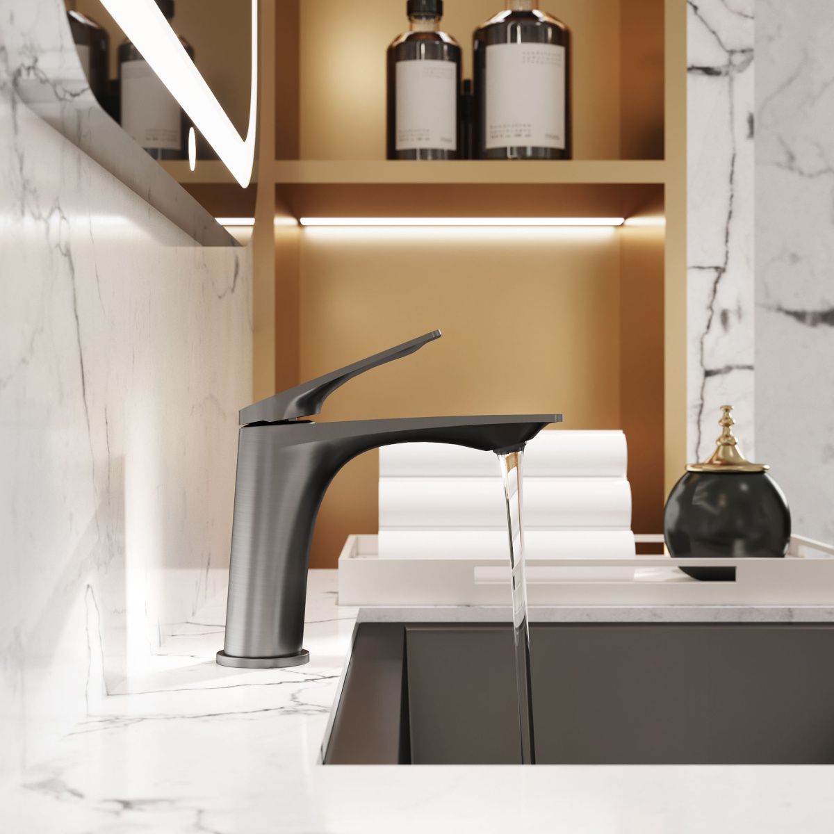 Смеситель Tokito MITSUISHI TOK-MIT-1011GM на раковину вороненая сталь