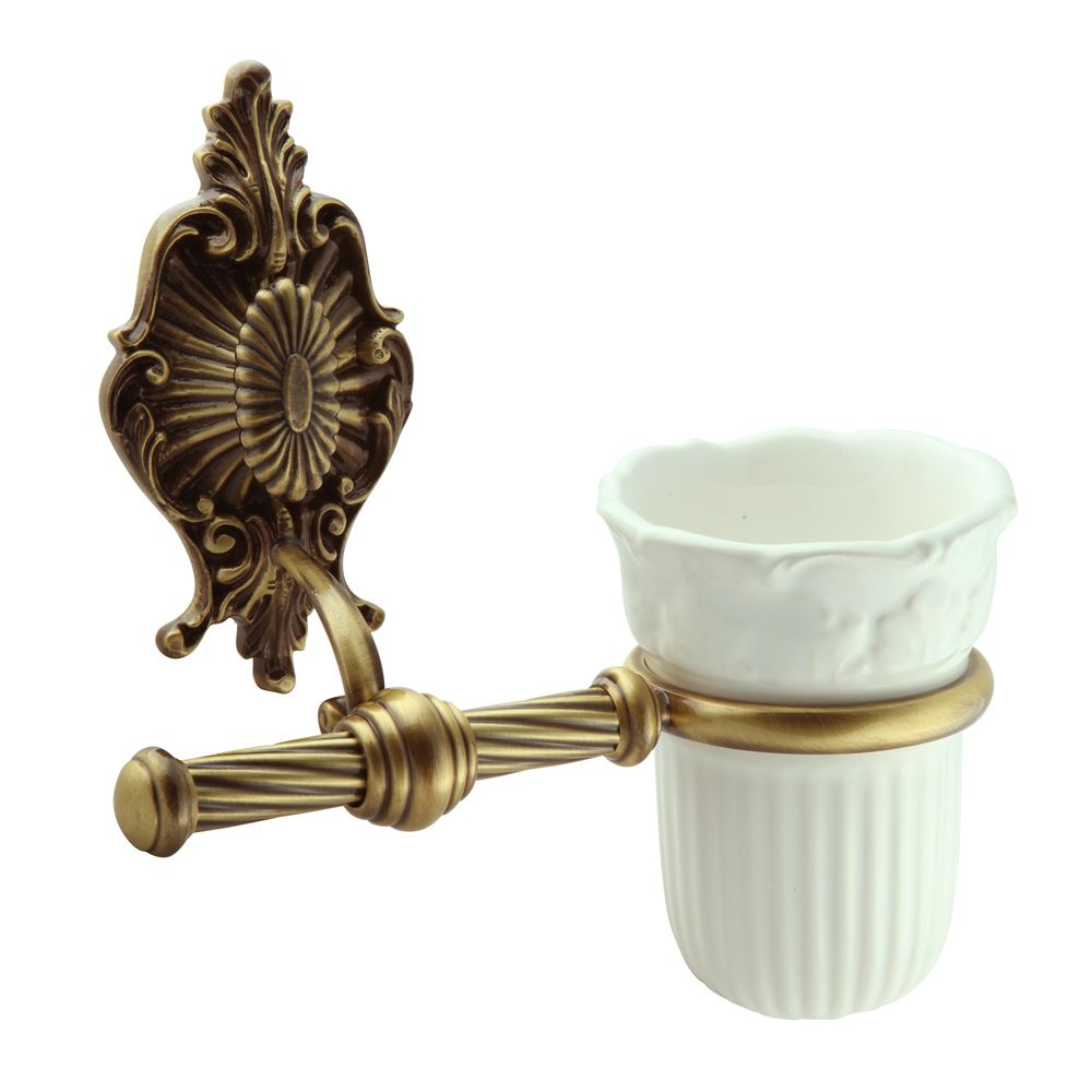 Стакан настенный коллекции ELISABETTA бренда MIGLIORE — один из самых необходимых аксессуаров для ванной комнаты. Стакан выполнен в  классическом стиле и предназначен для хранения зубных щеток и тюбиков с пастой. Между керамикой и латунным кольцом имеется уплотнительное пластиковое кольцо, которое надежно удерживает колбу стакана. Розетка аксессуара имеет необычную форму, и удобный крепеж.