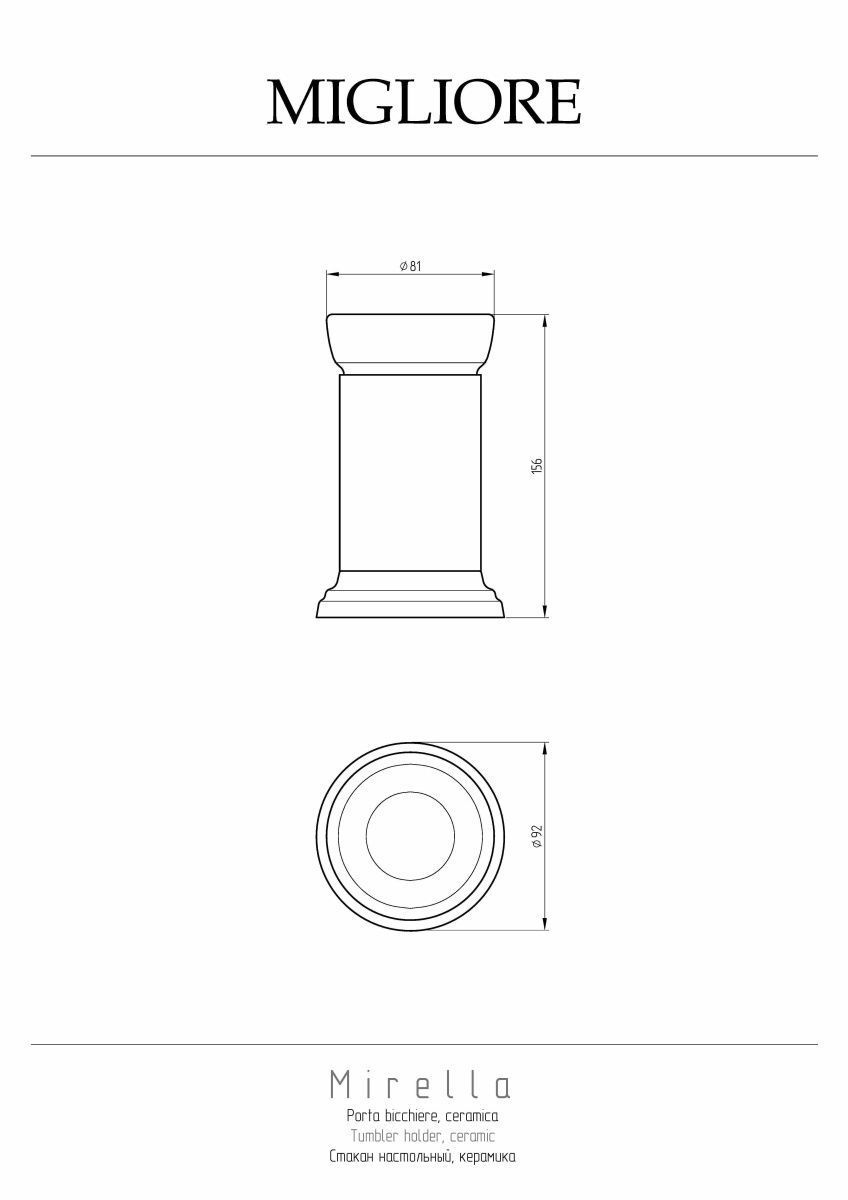 Стакан настольный серии MIRELLA брэнда MIGLIORE — это незаменимый аксессуар в ванной комнате. Стакан выполнен из высококачественной керамики, материал держателя — латунь — имеет высококачественнон хромо-никелиевое покрытие, которое при правильном уходе надолго сохранит свой блеск. . Для ухода рекомендуется использовать чистящее средство Migliore для смесителей и аксессуаров с хромированным покрытием.