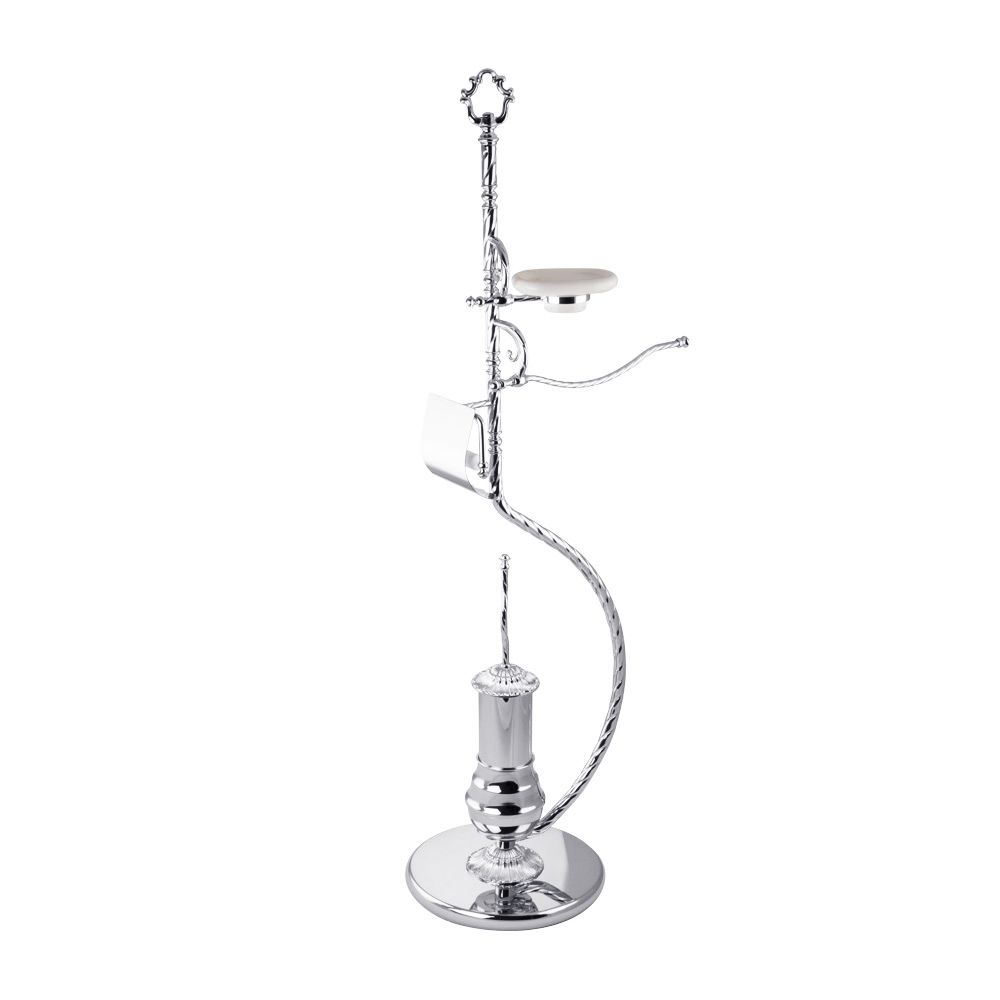 Стойка для унитаза и биде коллекции EDERA бренда MIGLIORE  - это многофункциональный аксессуар для ванной комнаты. На стойке расположены мыльница, полотенцедержатель, бумагодержатель с крышкой и латунный ерш, внутри которого вставлена пластиковая колба, которую легко мыть. Благодаря витым элементам аксессуары коллекции EDERA будут смотреться элегантно в классическом интерьере ванной комнаты.