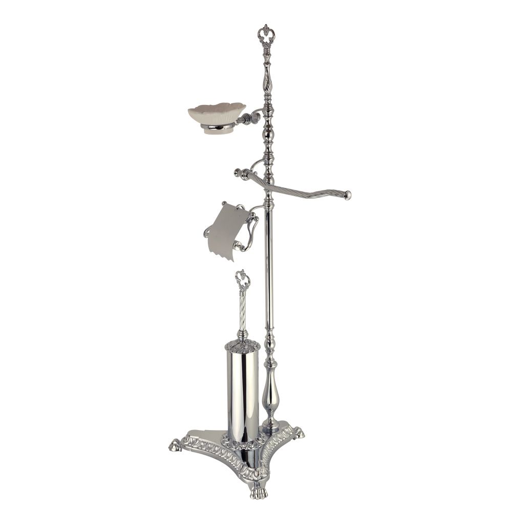 Стойка для унитаза и биде коллекции ELISABETTA бренда MIGLIORE - это многофункциональный и красивый аксессуар для ванной комнаты. На стойке расположены мыльница, полотенцедержатель для небольшого полотенца, бумагодержатель с крышкой и латунный декорированный ерш, внутри которого вставлена пластиковая колба, которую можно вынуть, чтобы помыть.