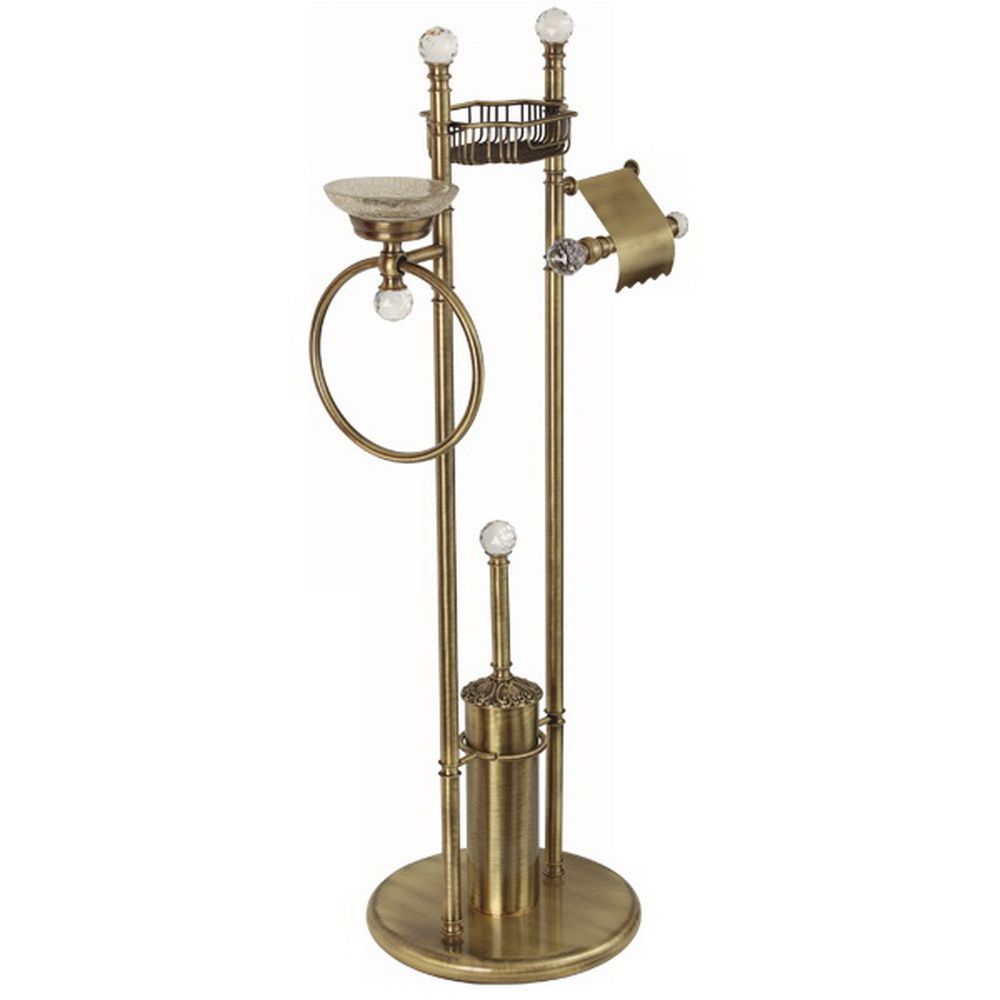 Стойка для унитаза и биде коллекции CRISTALIA бренда MIGLIORE — это красивый и многофункциональный аксессуар для ванной комнаты. На стойке расположены бумагодержатель с крышкой, решетка-корзинка, мыльница с кольцом и латунный ерш, внутри которого вставлена пластиковая колба, которую легко вынуть, чтобы помыть. Стекло мыльницы изготовлено вручную с добавлением фольги из золота, которая, растворяясь в стекле, образует красивый декор. Аксессуар богато украшен кристаллами Сваровски.
