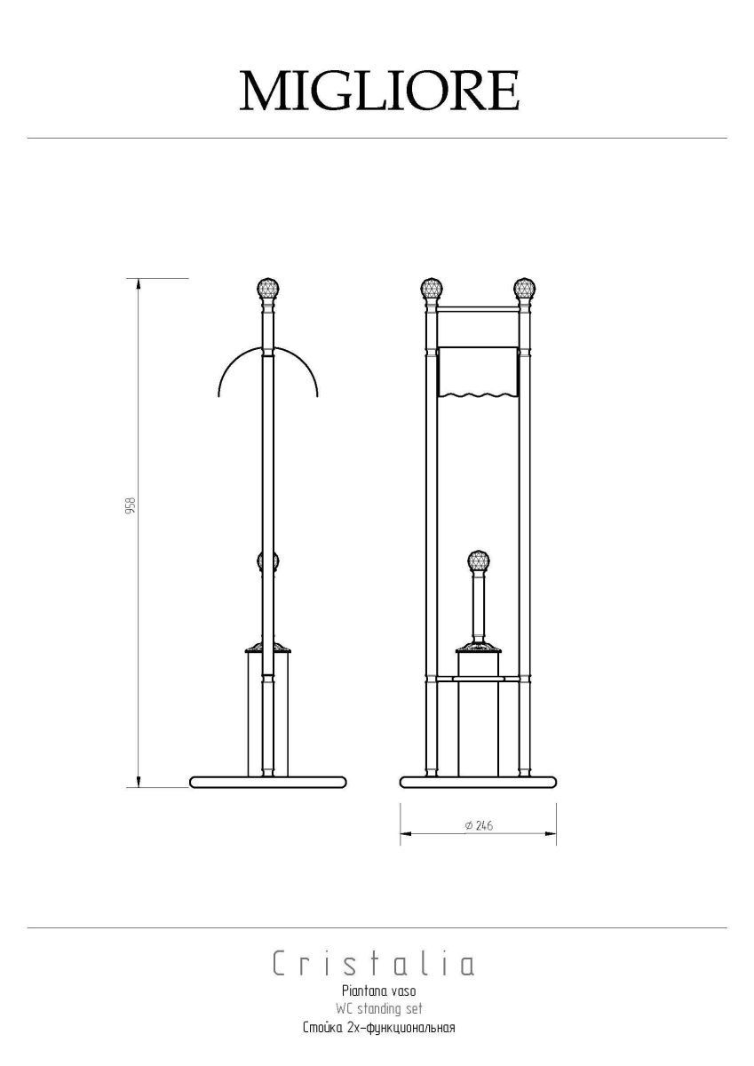 Стойка для унитаза коллекции CRISTALIA бренда MIGLIORE — это красивый и многофункциональный аксессуар для ванной комнаты. На стойке расположены  бумагодержатель с крышкой и латунный  ерш, внутри которого вставлена пластиковая колба, которую легко вынуть, чтобы помыть. Аксессуар богато украшен кристаллами Сваровски.