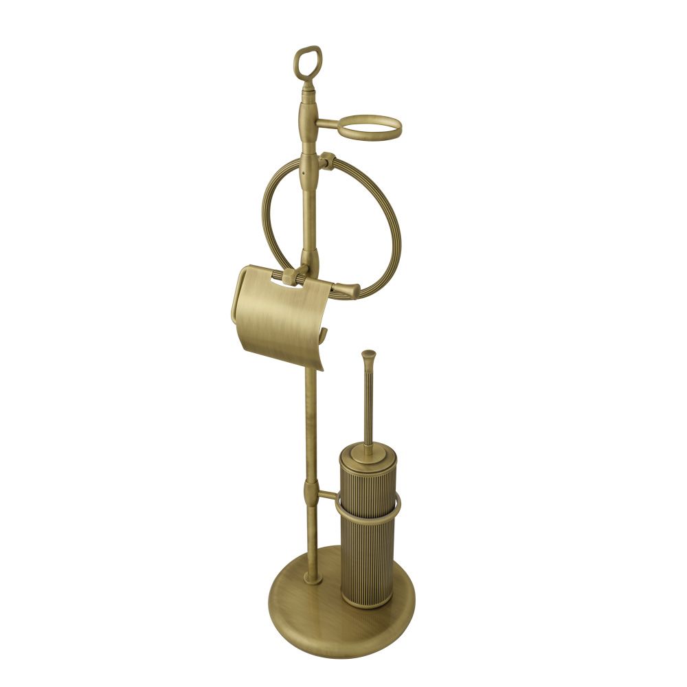 Стойка для унитаза и биде серии FORTUNA бренда MIGLIORE  - это функциональный аксессуар для ванной комнаты. В верхней части расположен держатель для мыльницы и  полотенцедержатель, далее — бумагодержатель с крышкой и латунный ерш, внутри которого вставлена пластиковая колба, которую легко мыть.  Вы можете выбрать для комплектации любую мыльницу — керамическую, мыльницу из матового стекла с декором или прозрачного стекла. Материал — латунь, покрытие цвета бронза. Внимание: бронзовое покрытие достаточно деликатное и для ухода рекомендуется протирать изделие мягкой безворсовой тряпочкой с мыльным раствором и вытирать насухо или использовать чистящее средство бренда MIGLIORE для смесителей и аксессуаров с деликатными покрытиями бронза, золото, медь.