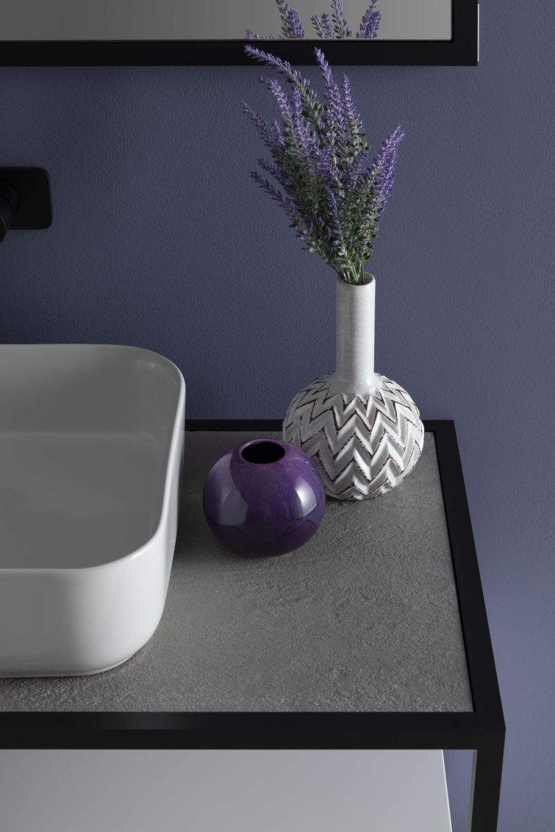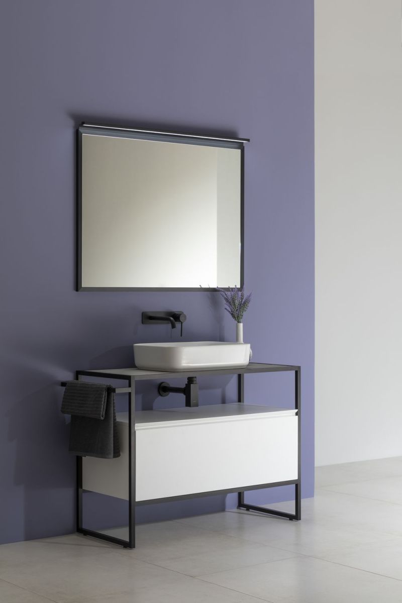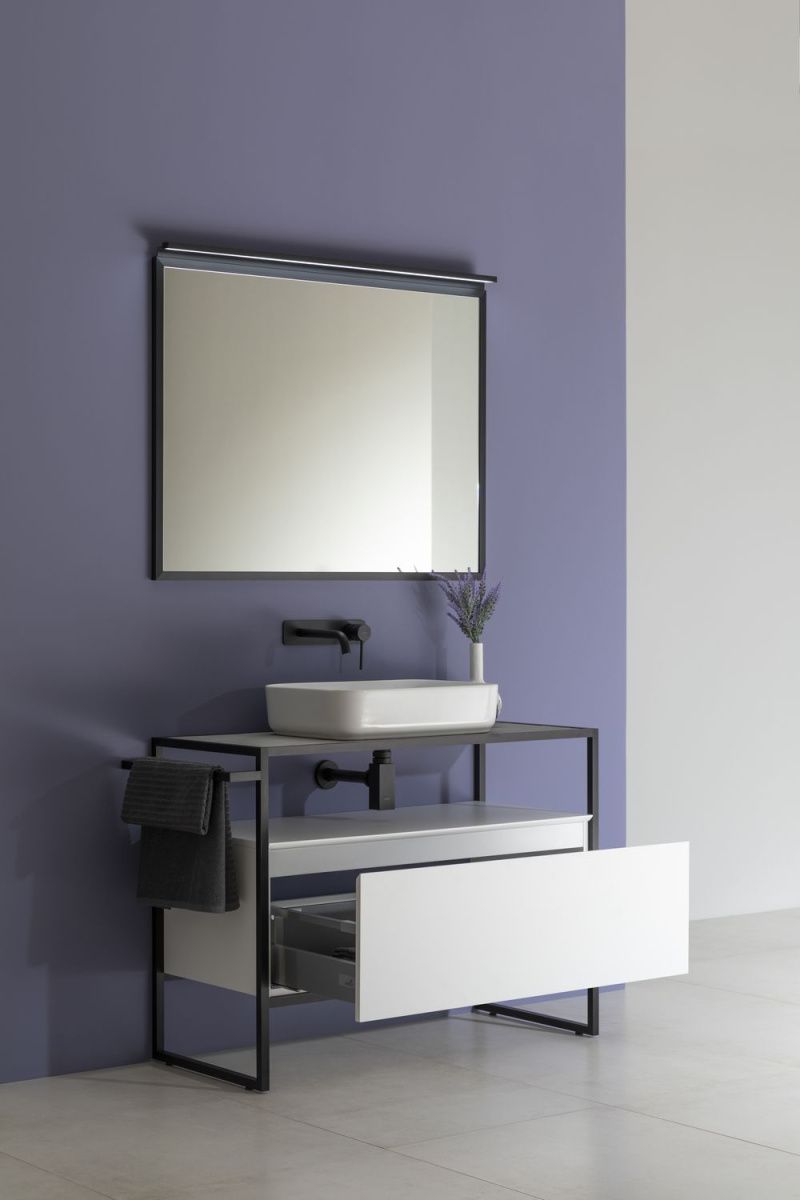 Стильные каркасы тумб и пеналов выполнены из металла, имеют брашированную поверхность с нанесением цвета путем анодирования.