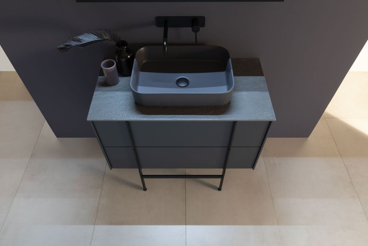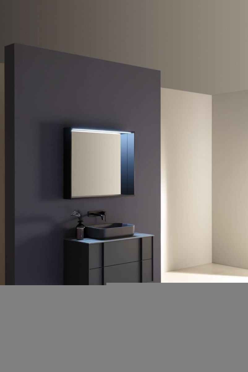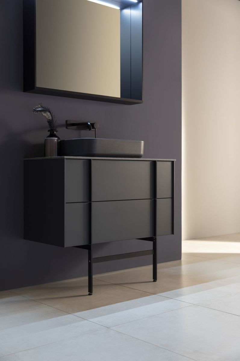 Изюминкой коллекции являются стильные и оригинальные металлические ручки, которые образуют единую линию с ножками тумбы и пенала. Ручки, опоры и зеркала коллекции REALITY выполнены из металла в цветах: черный браш или латунь браш.