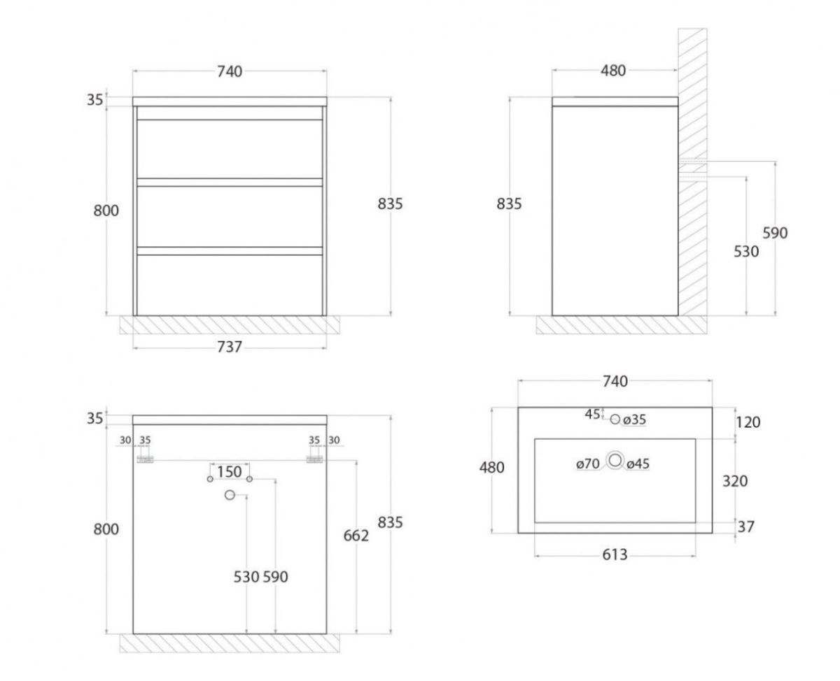 4 металлические ножки с пластиковой опорой с регулировкой 1,5 см/крепление к стене
