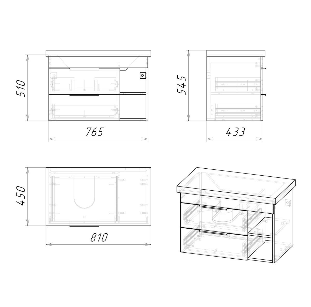 Ручки и подвесы для крепления тумбы - в комплекте.