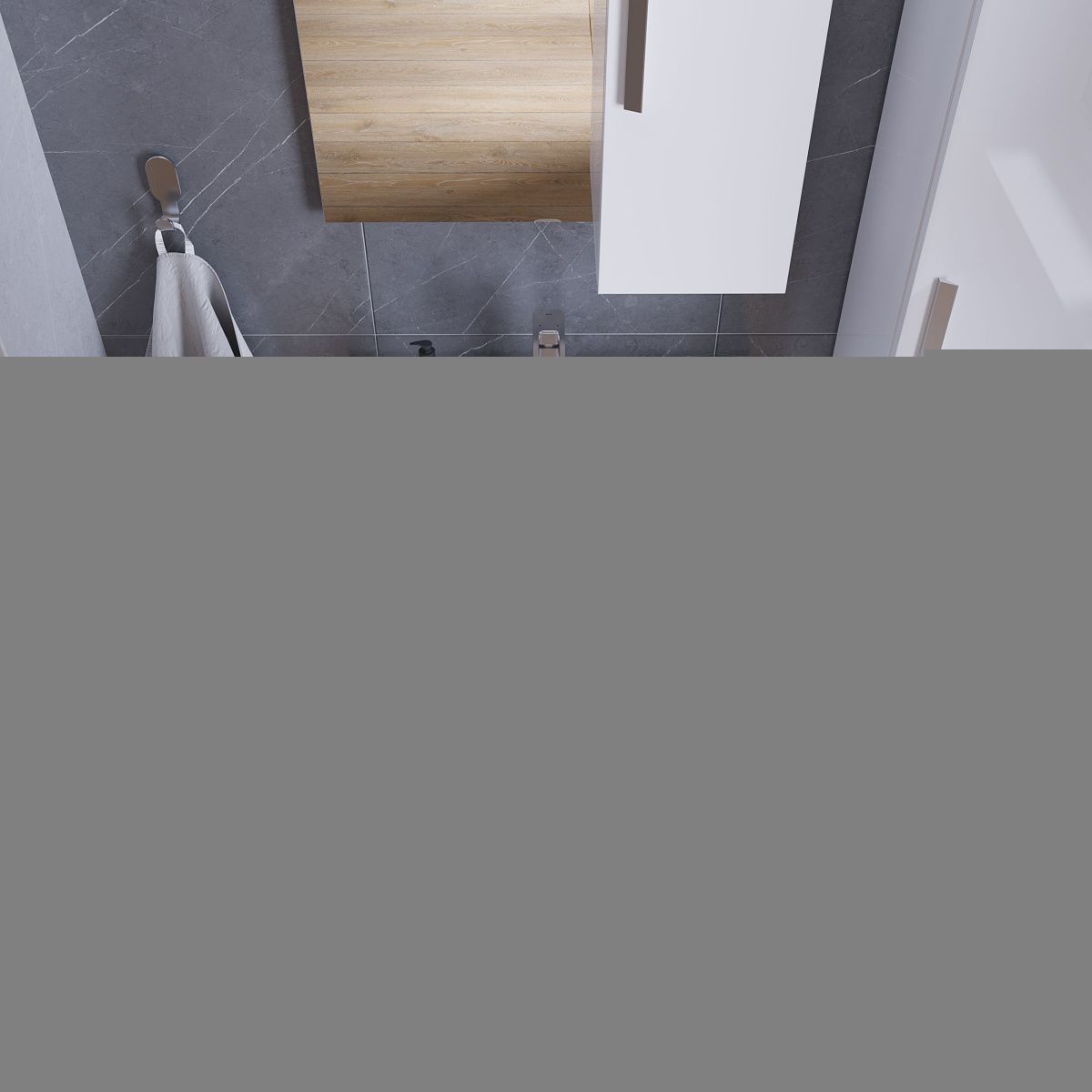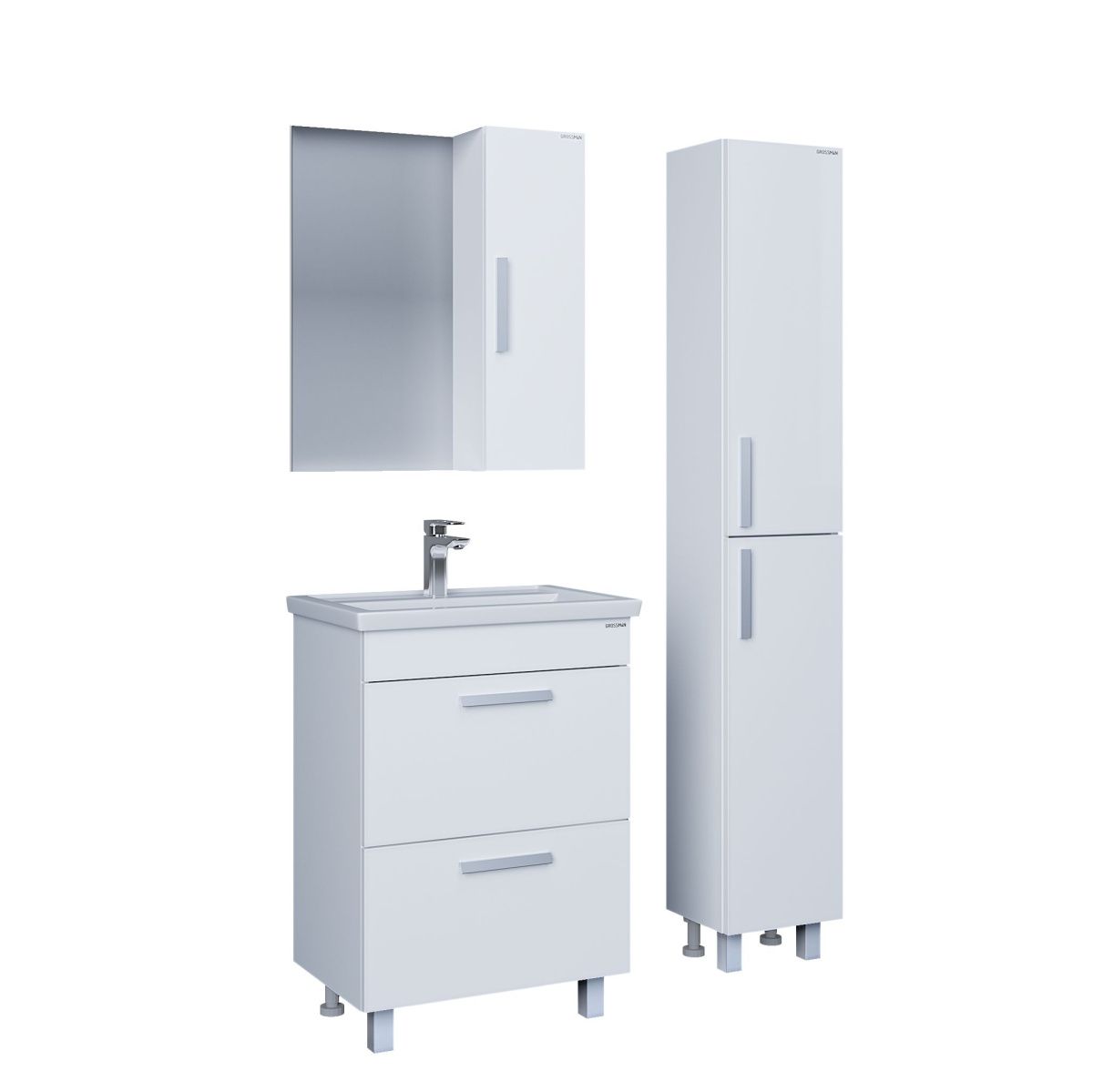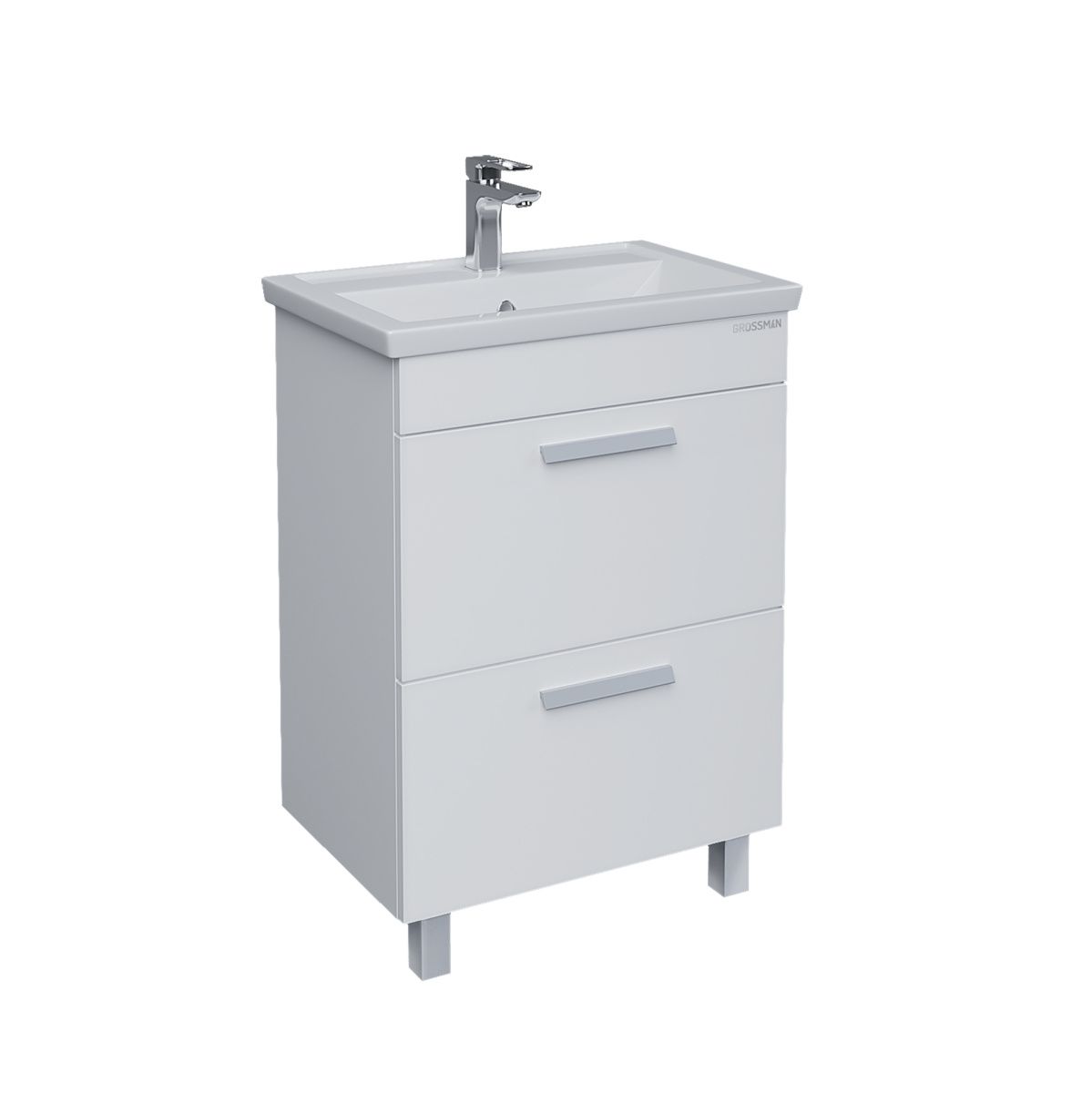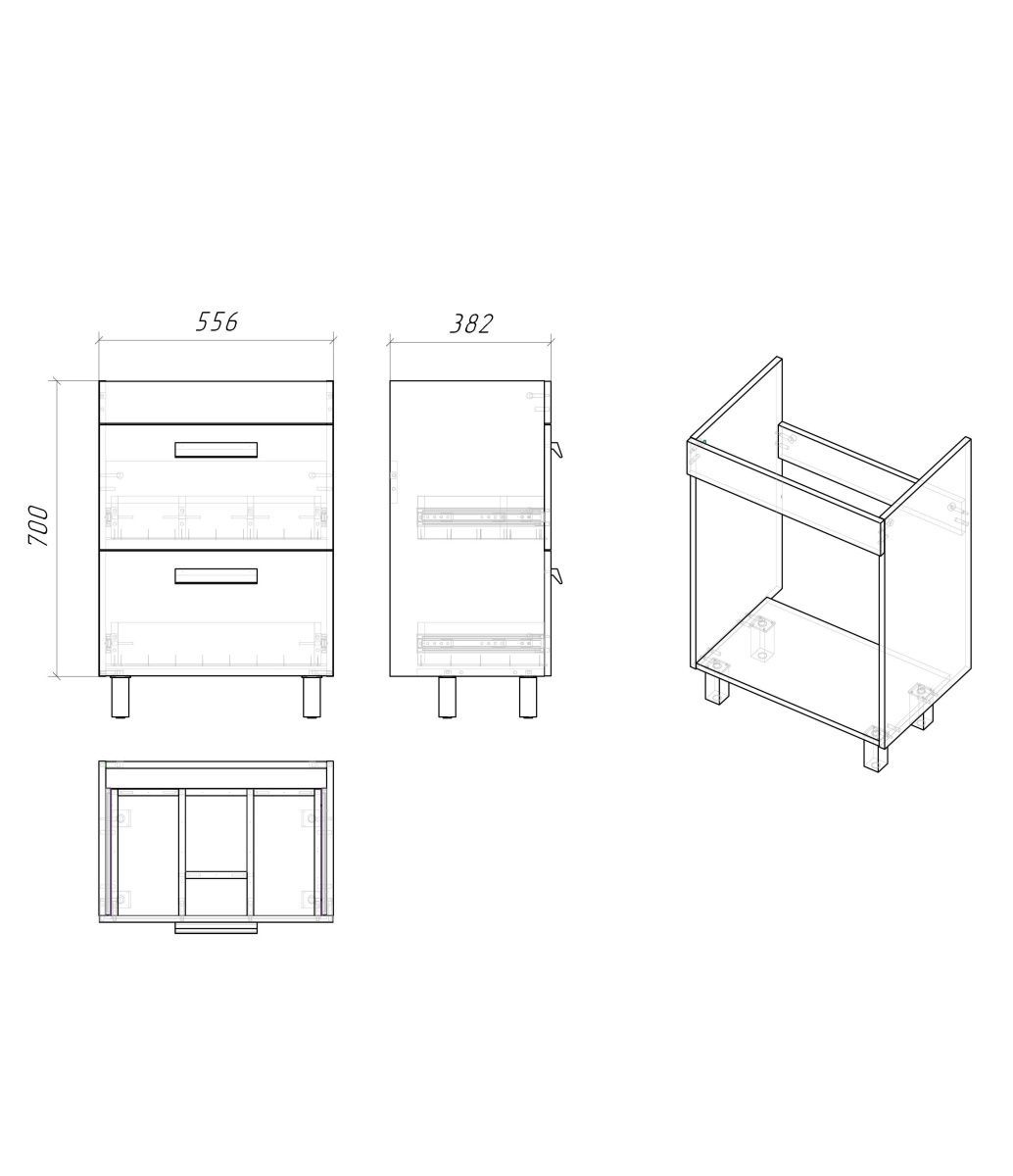 Направляющие с доводчиками гарантируют плавное и бесшумное закрывание ящиков, что добавляет комфорта в использовании тумбы. На фасадах удобно расположены стильные алюминиевые ручки в матовом хромированном цвете.