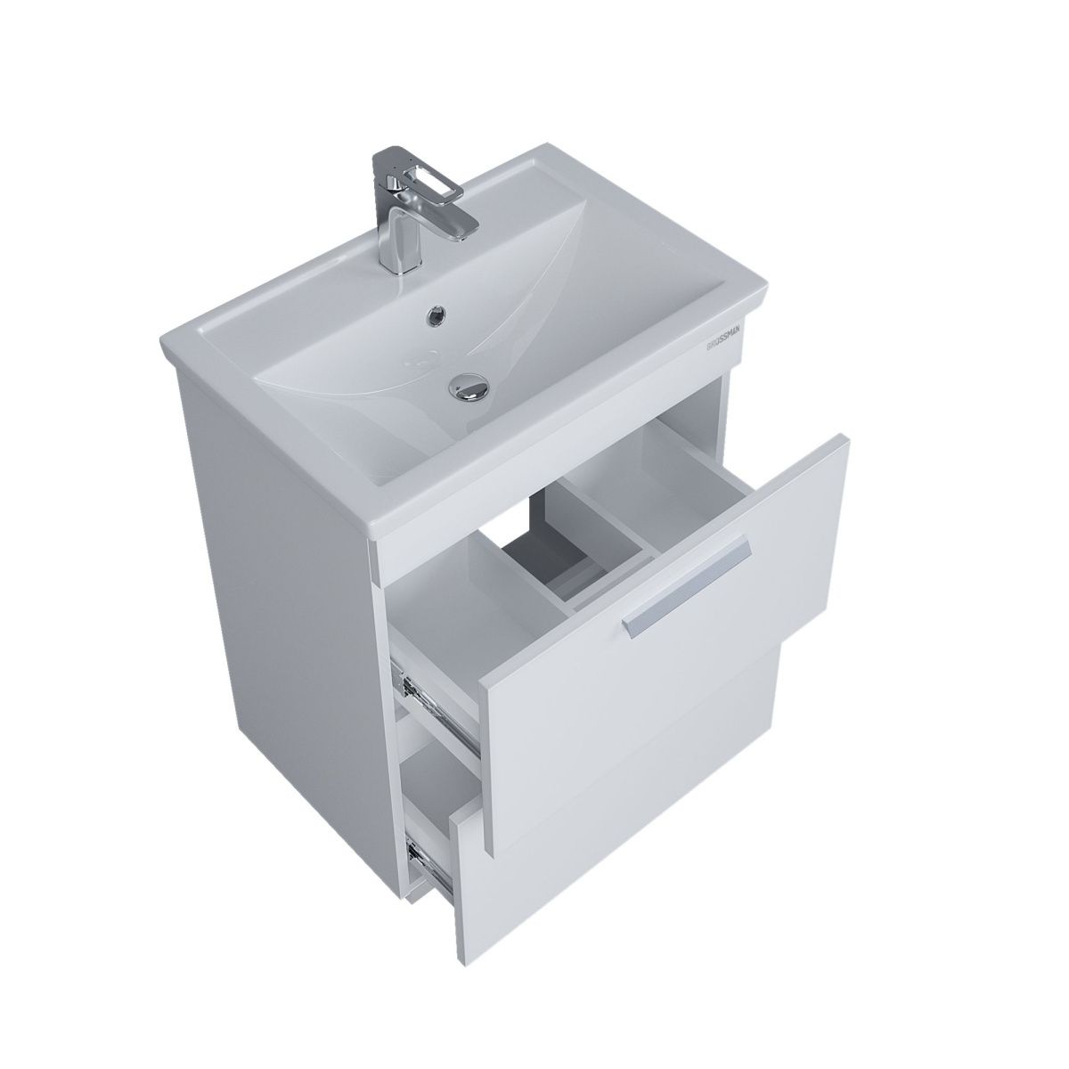 В комплекте к тумбе "НЕО-60 см" предоставляются подвесы для ее крепления. Белый глянцевый цвет придает тумбе эстетичность и шарм, который легко сочетается с любыми цветами интерьера.