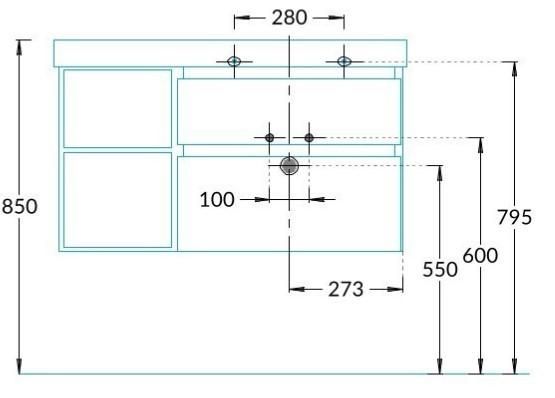 Тумба CUBO продолжает идею асимметрии в большой открытой нише, делая конструкцию еще более функциональной