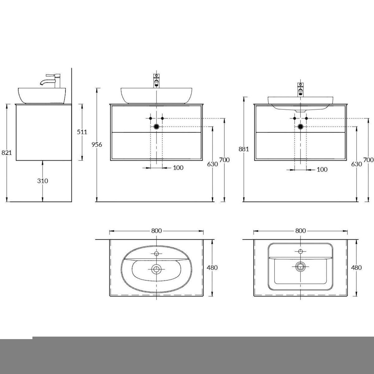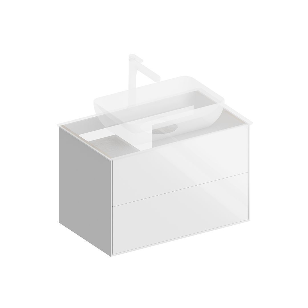 Белые глянцевые фасады подвесных тумб PLAZA Modern и столешницы, выполненные в разных цветах, легко впишутся в современную обстановку