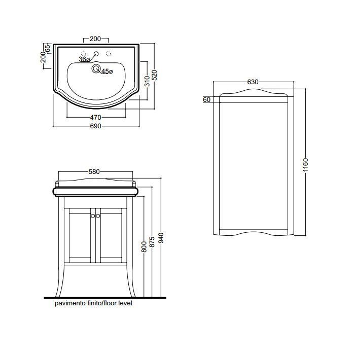 —Тумба под раковину Kerasan Retro 735140 70х50 цвет коричневый