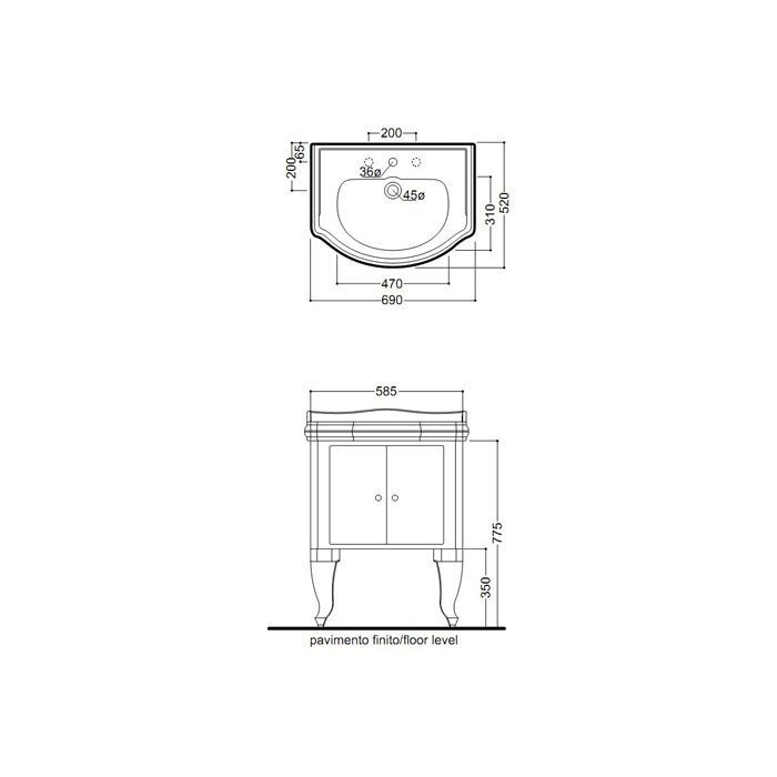 —Тумба под раковину Kerasan Retro 7361K5 70х50 подвесная цвет белый