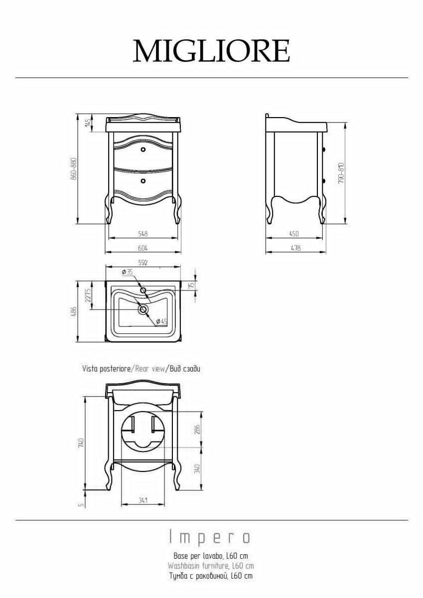 —Тумба под раковину Migliore IMPERO 25971 60х50 напольная цвет коричневый
