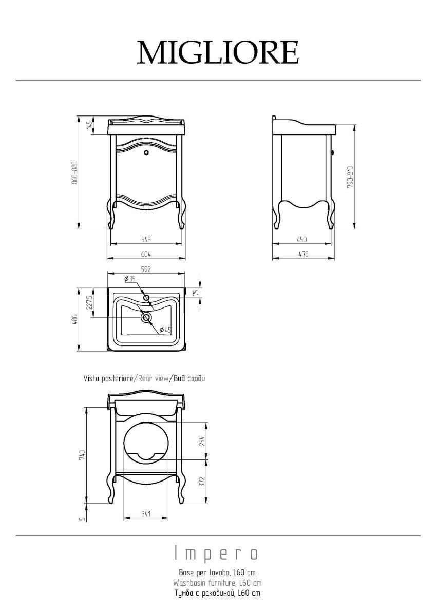 —Тумба под раковину Migliore IMPERO 30871 60х50 напольная цвет бежевый
