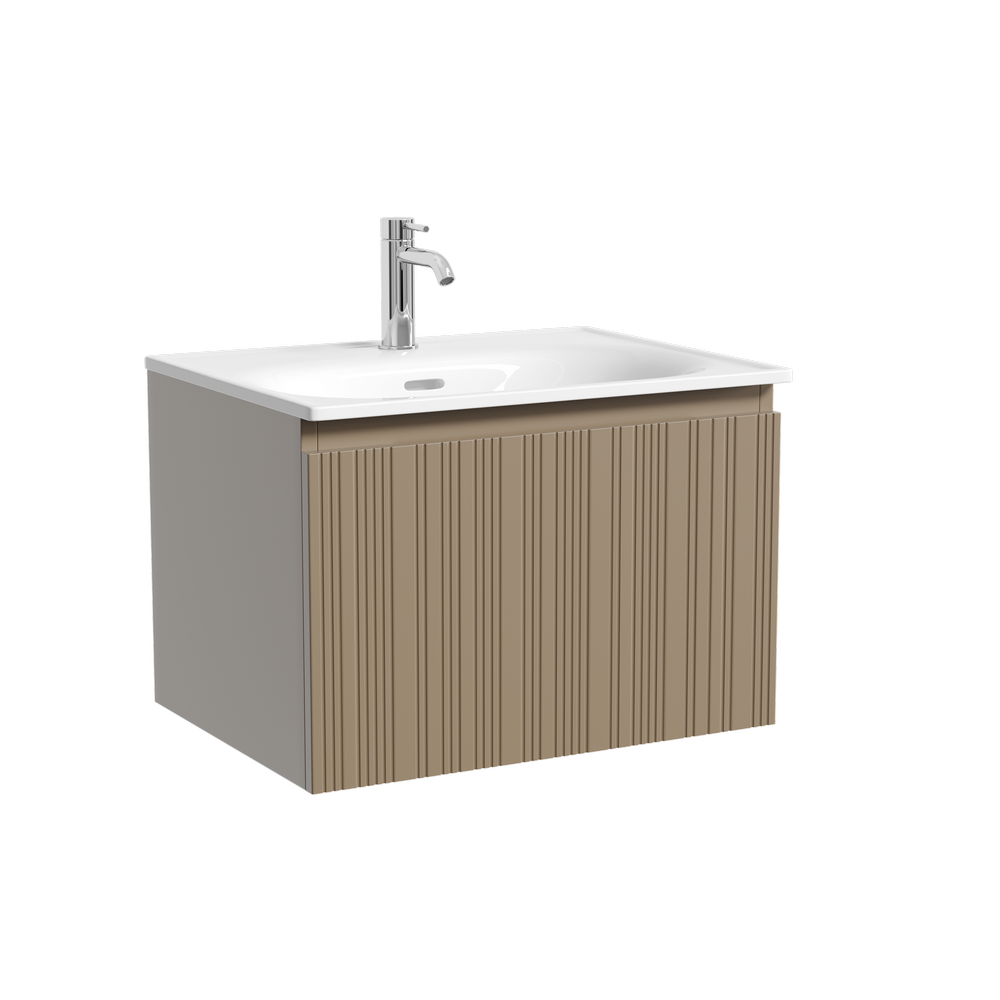 Тумба с одним выдвижным ящиком с доводчиками скрытого монтажа, Выполнена из МДФ с покрытием ПВХ плёнка , комплектующие FIRMAX. Цвет серо- бежевый