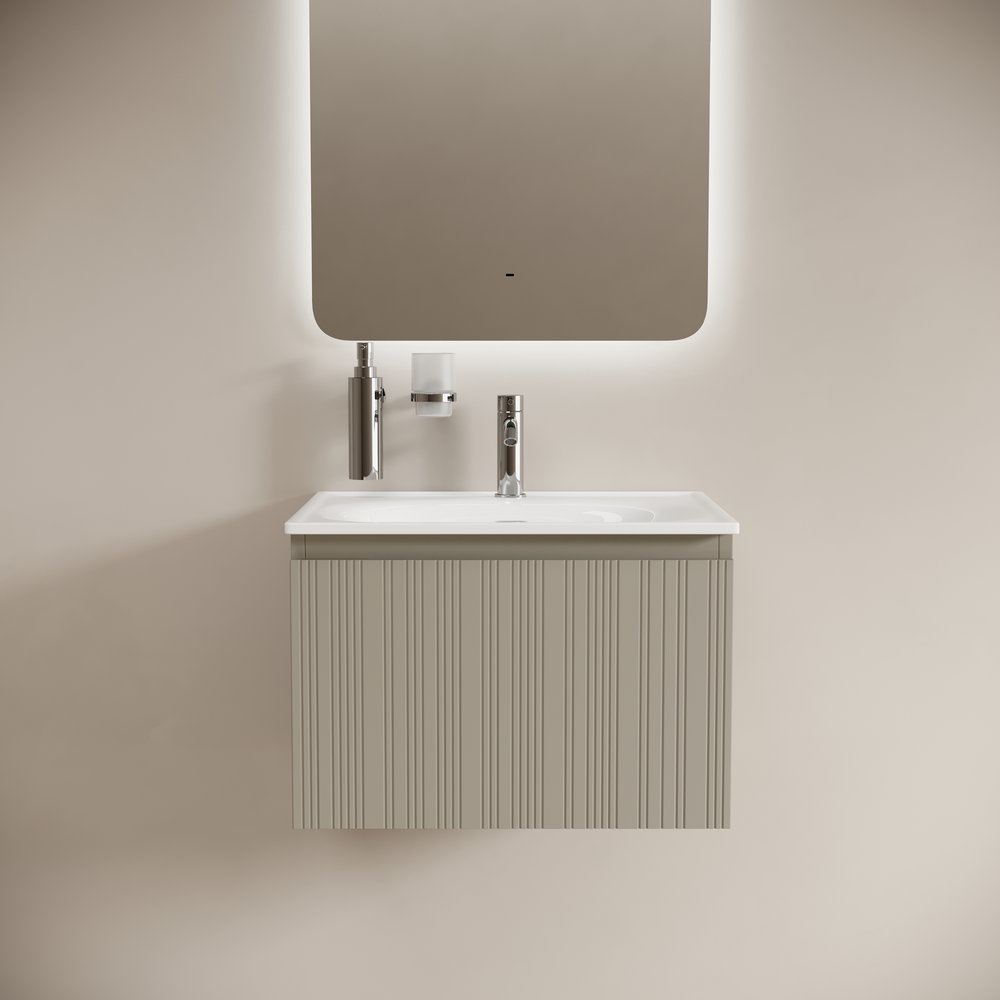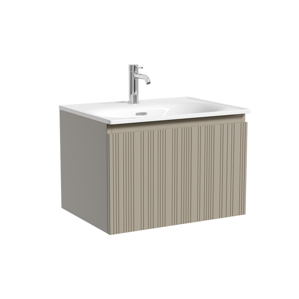Тумба с одним выдвижным ящиком с доводчиками скрытого монтажа, Выполнена из МДФ с покрытием ПВХ плёнка , комплектующие FIRMAX. Цвет серая платина