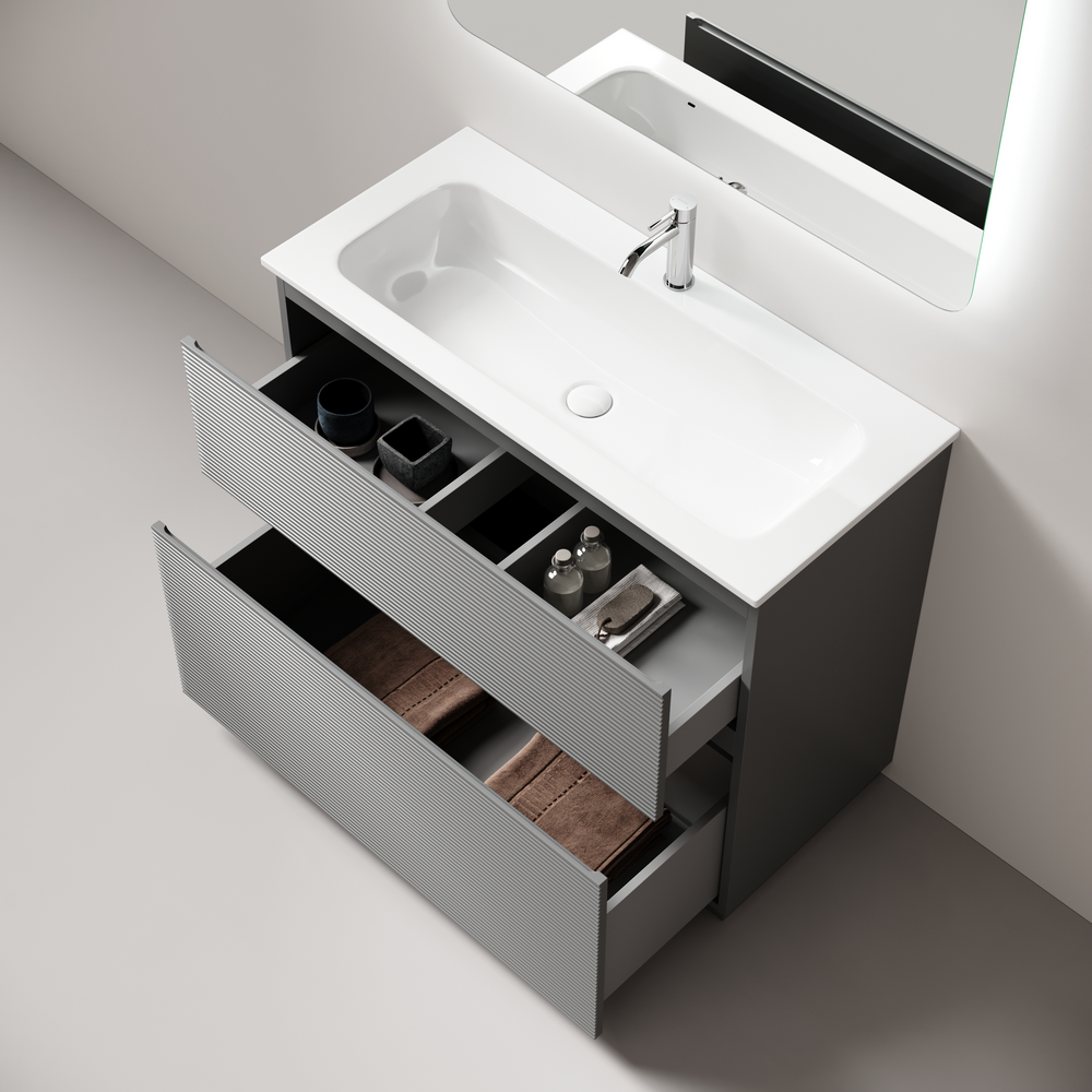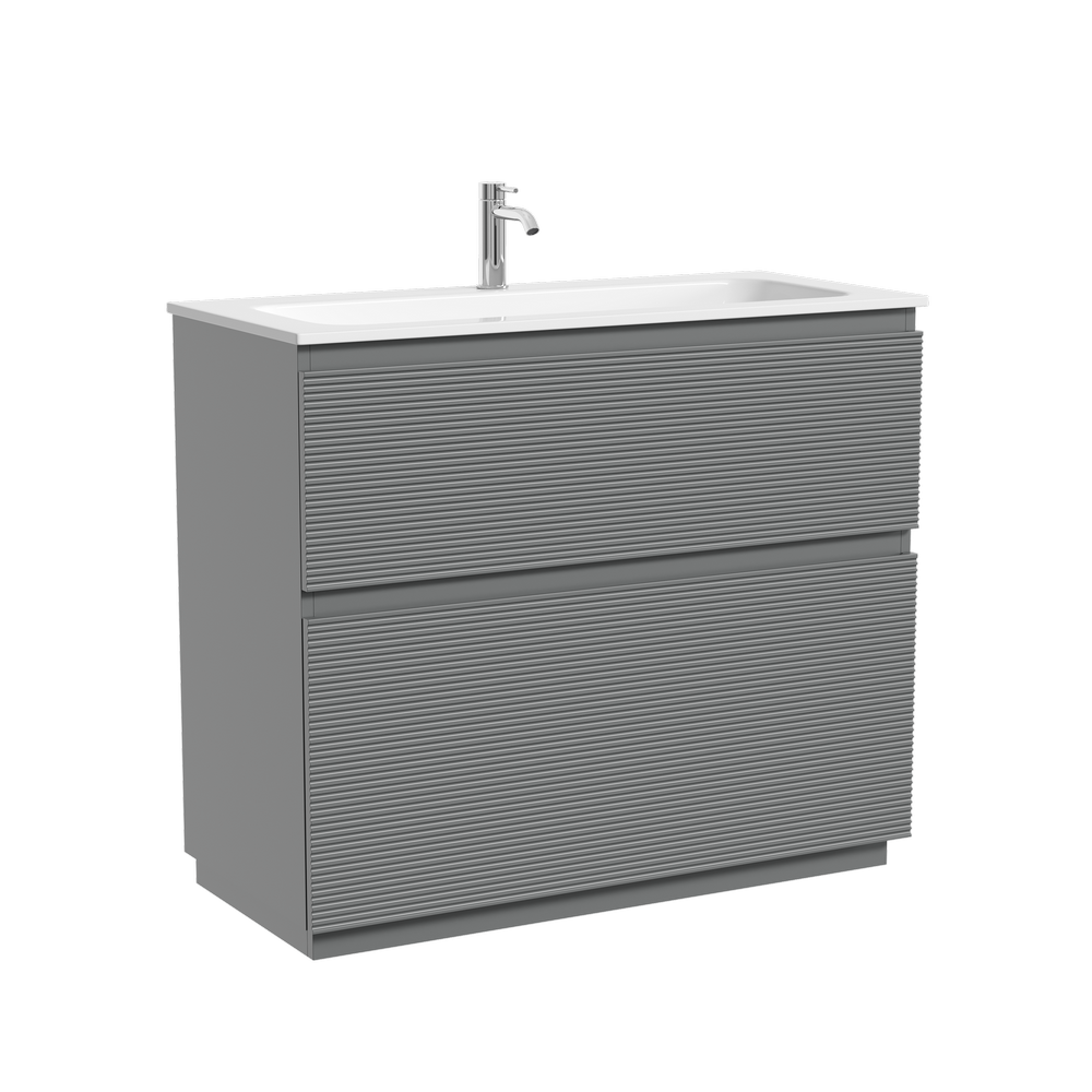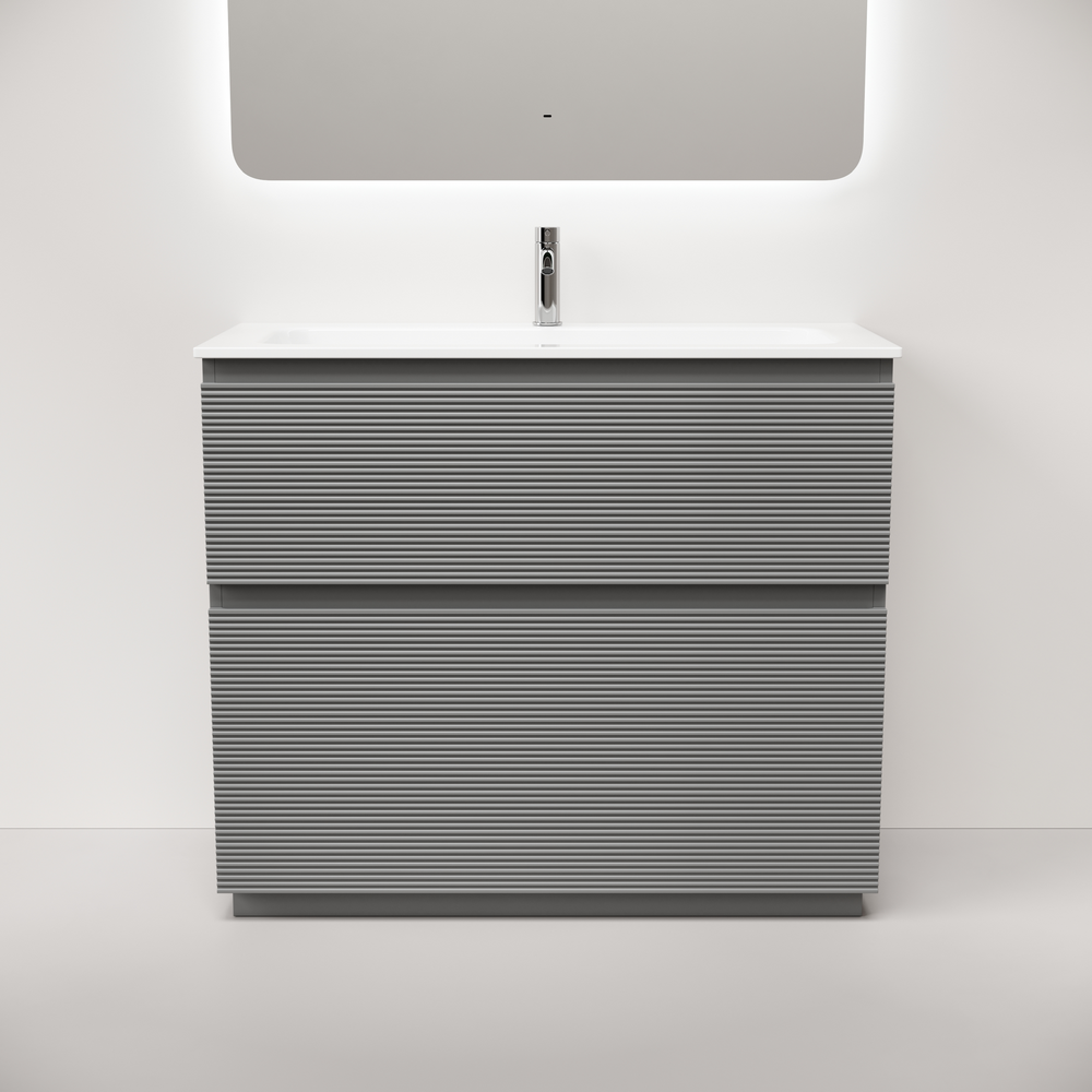 На изображении тумба Folk Floor представлена с зеркалом RAY, смесителем из коллекции ETNA и раковиной Grace CN7013