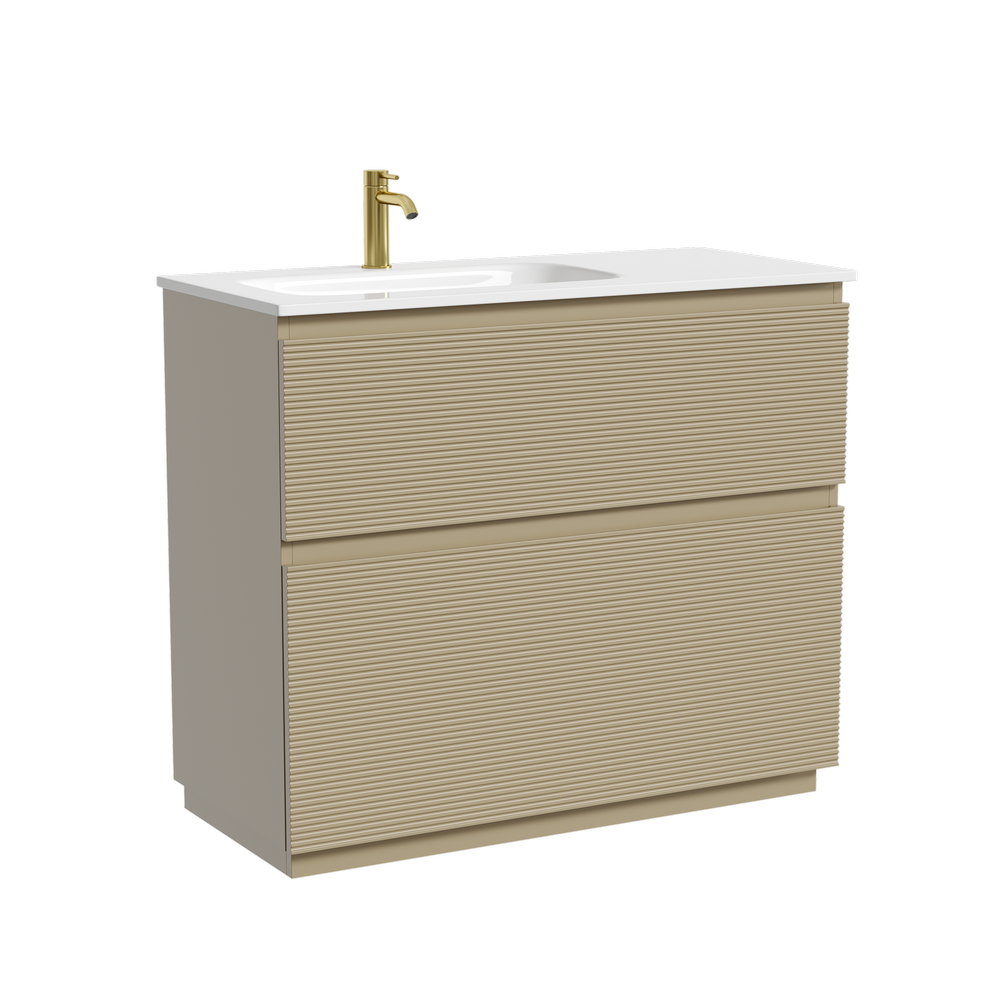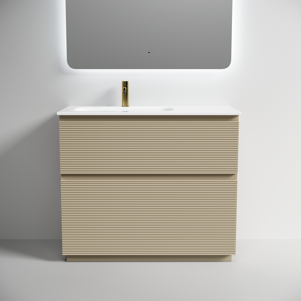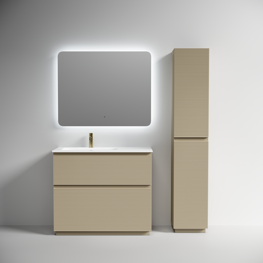 На изображении тумба Folk Floor представлена с зеркалом RAY, смесителем из коллекции ETNA и раковиной Grace CN7014