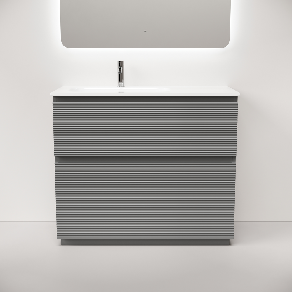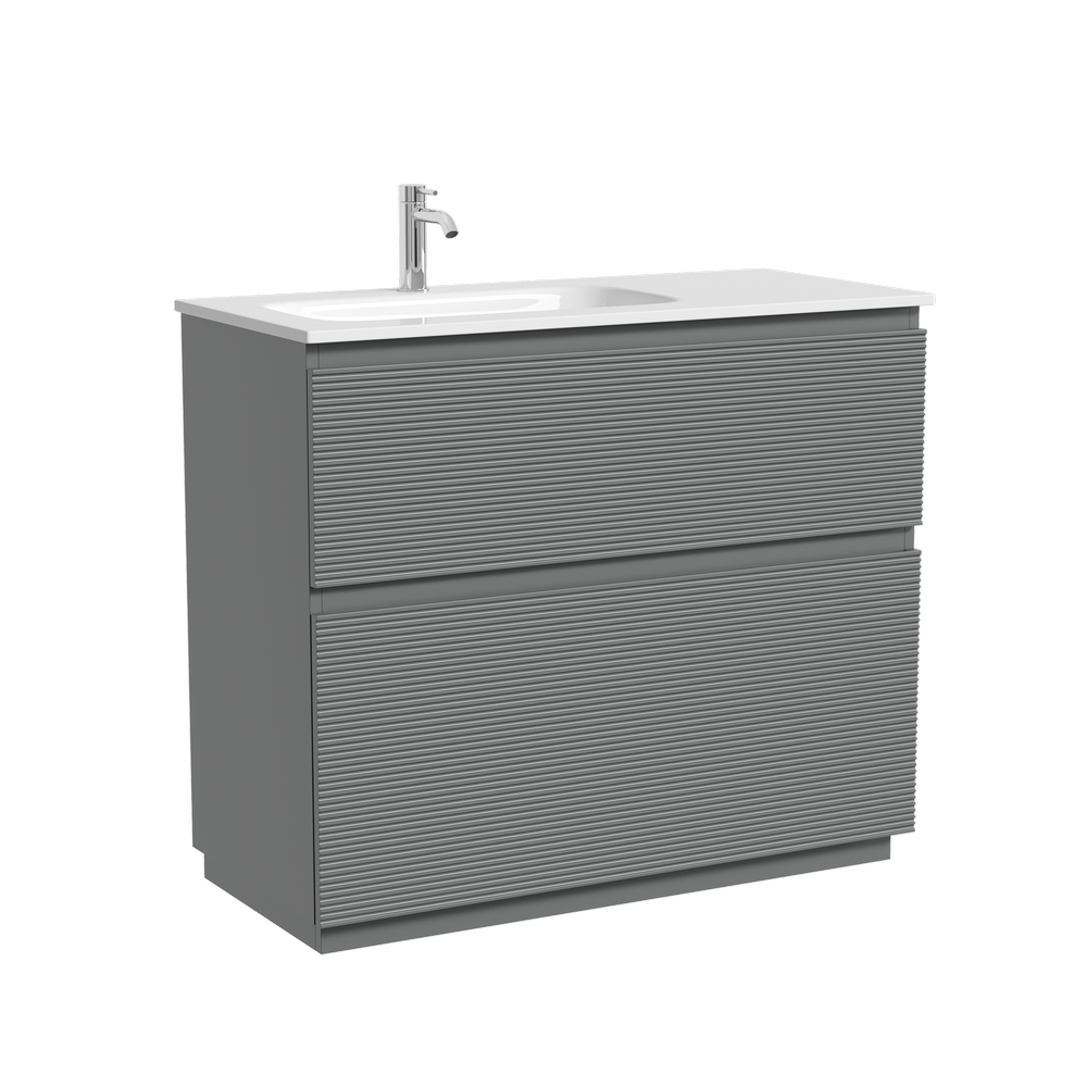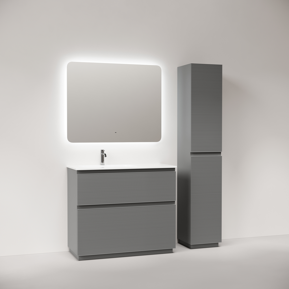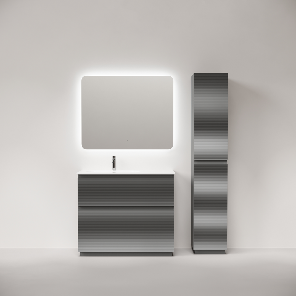 На изображении тумба Folk Floor представлена с зеркалом RAY, смесителем из коллекции ETNA и раковиной Grace CN7014