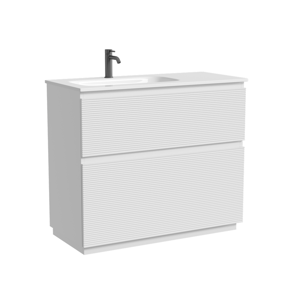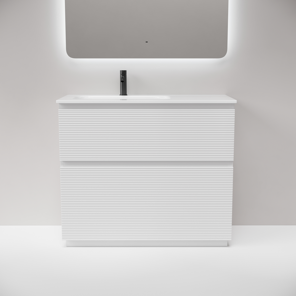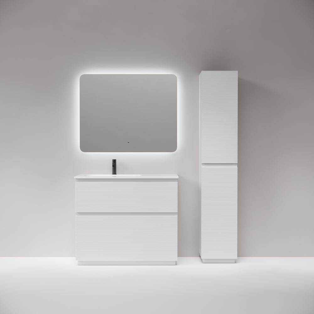 На изображении тумба Folk Floor представлена с зеркалом RAY, смесителем из коллекции ETNA и раковиной Grace CN7014