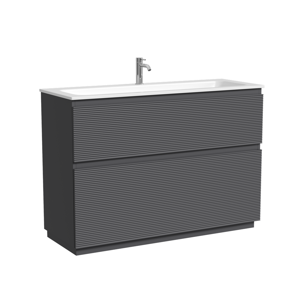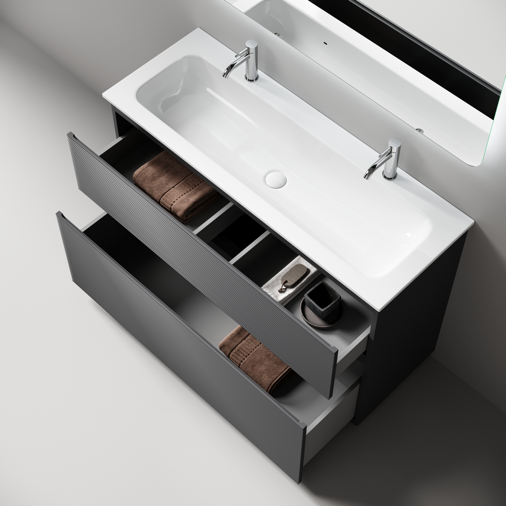 На изображении тумба Folk Floor представлена с зеркалом RAY, смесителем из коллекции ETNA и раковинами Grace CN7016, CN7017