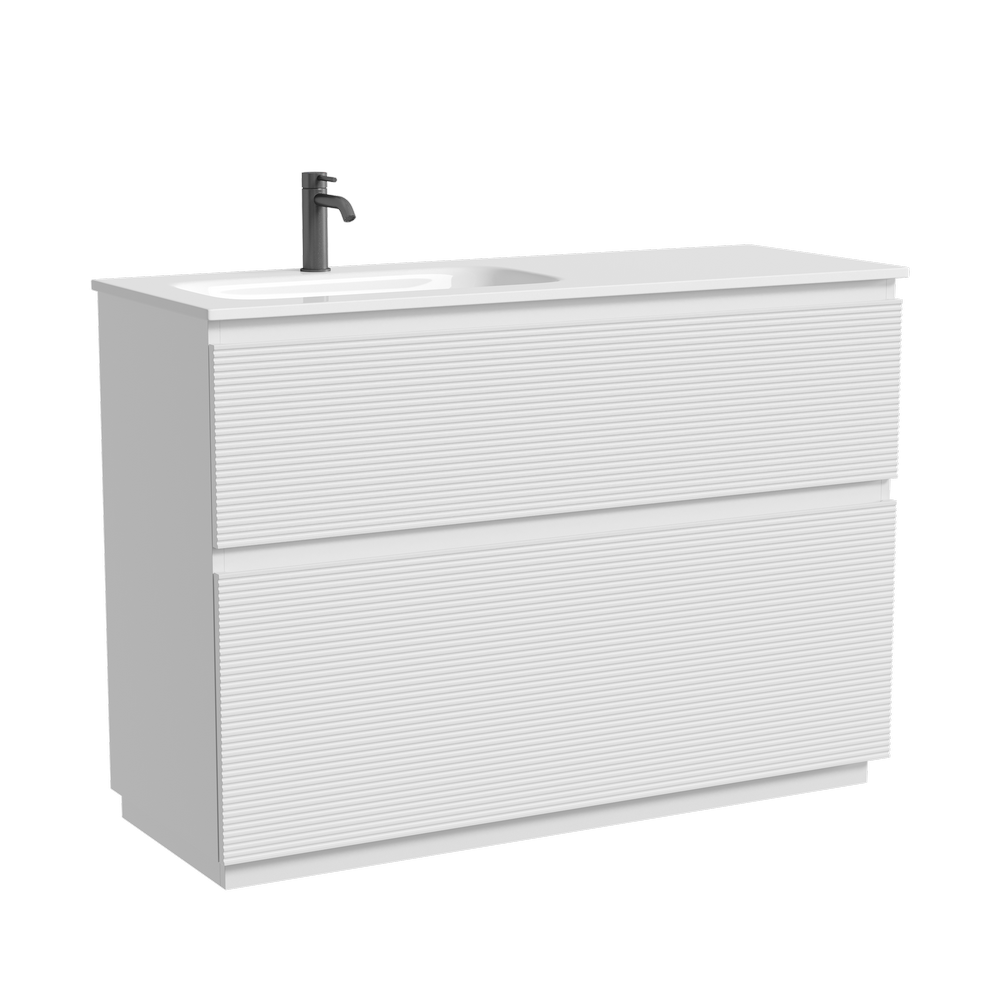 На изображении тумба Folk Floor представлена с зеркалом RAY, смесителем из коллекции ETNA и раковинами Grace CN7020