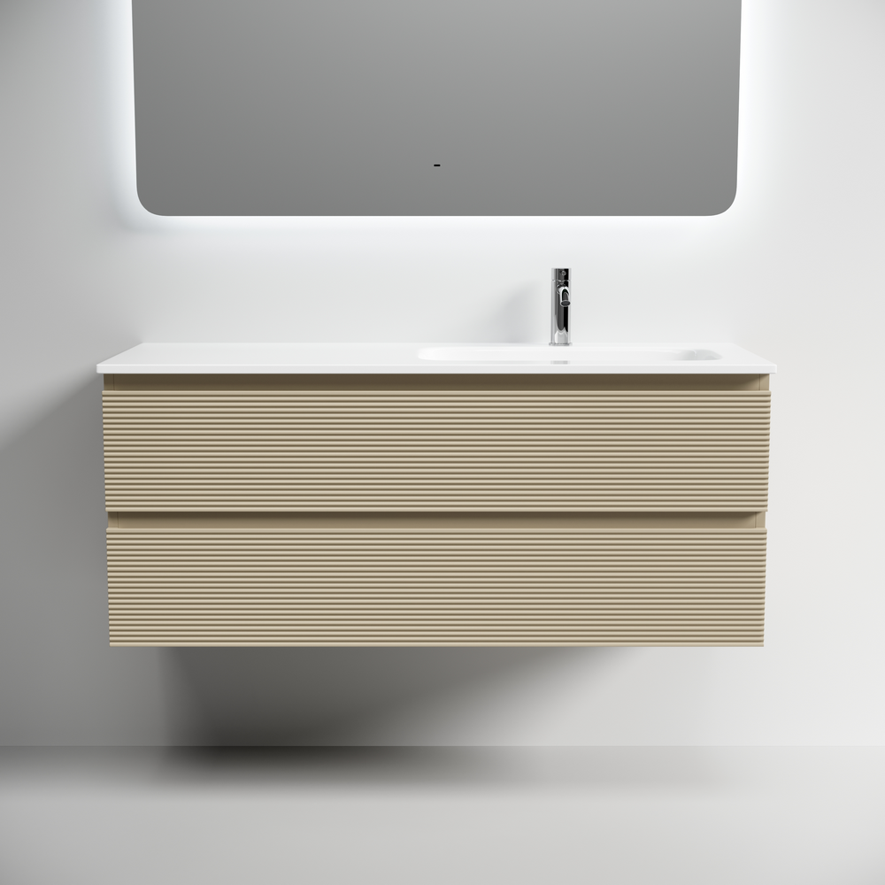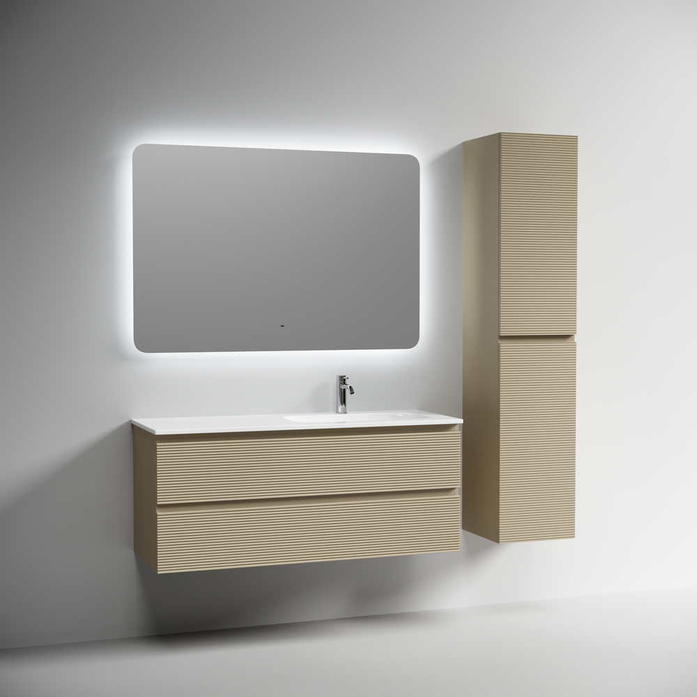 На изображении тумба Folk представлена с зеркалом RAY, смесителем из коллекции ETNA и раковиной Grace CN7021