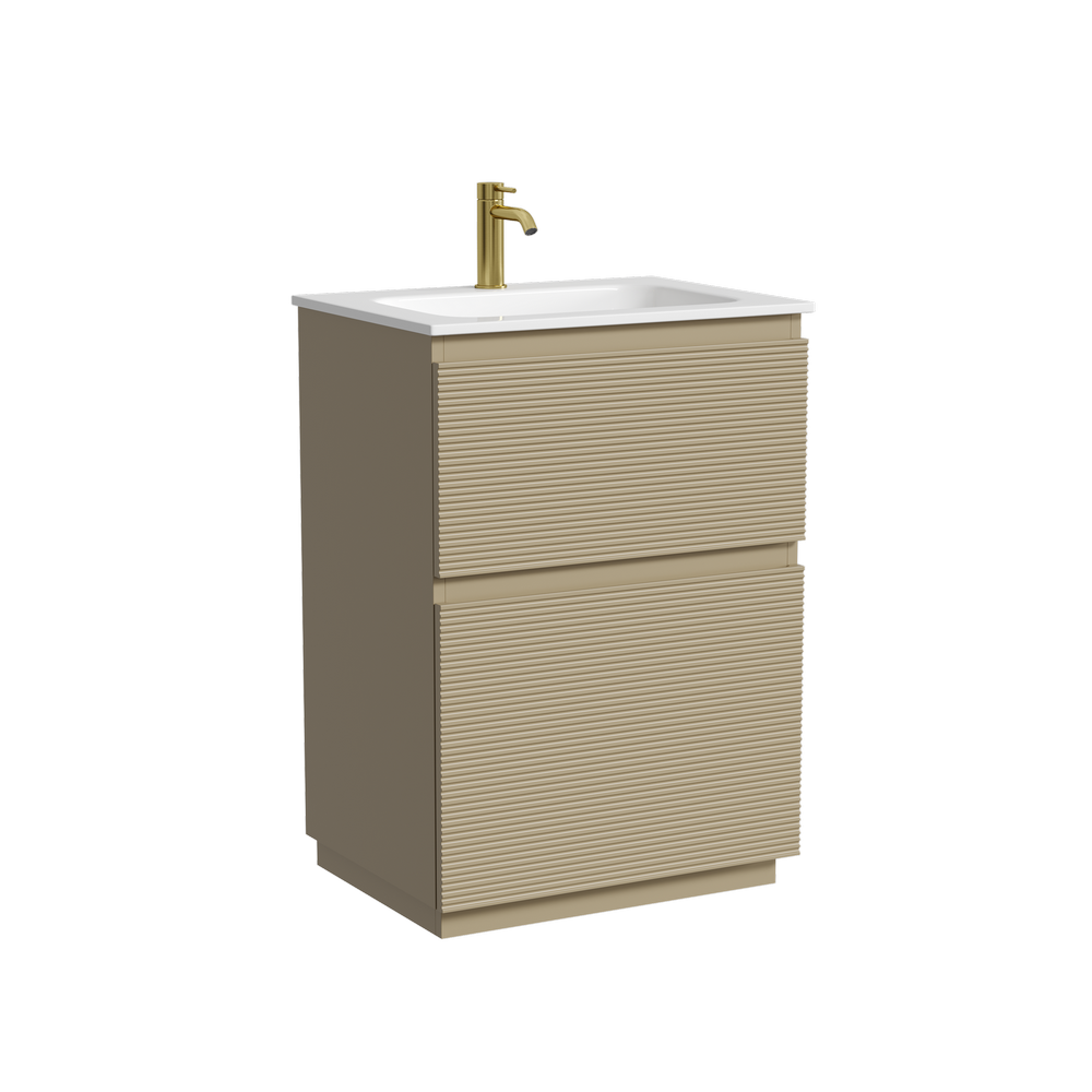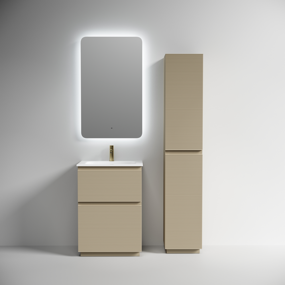 На изображении тумба Folk Floor представлена с зеркалом RAY, смесителем из коллекции ETNA и раковиной Grace CN7011