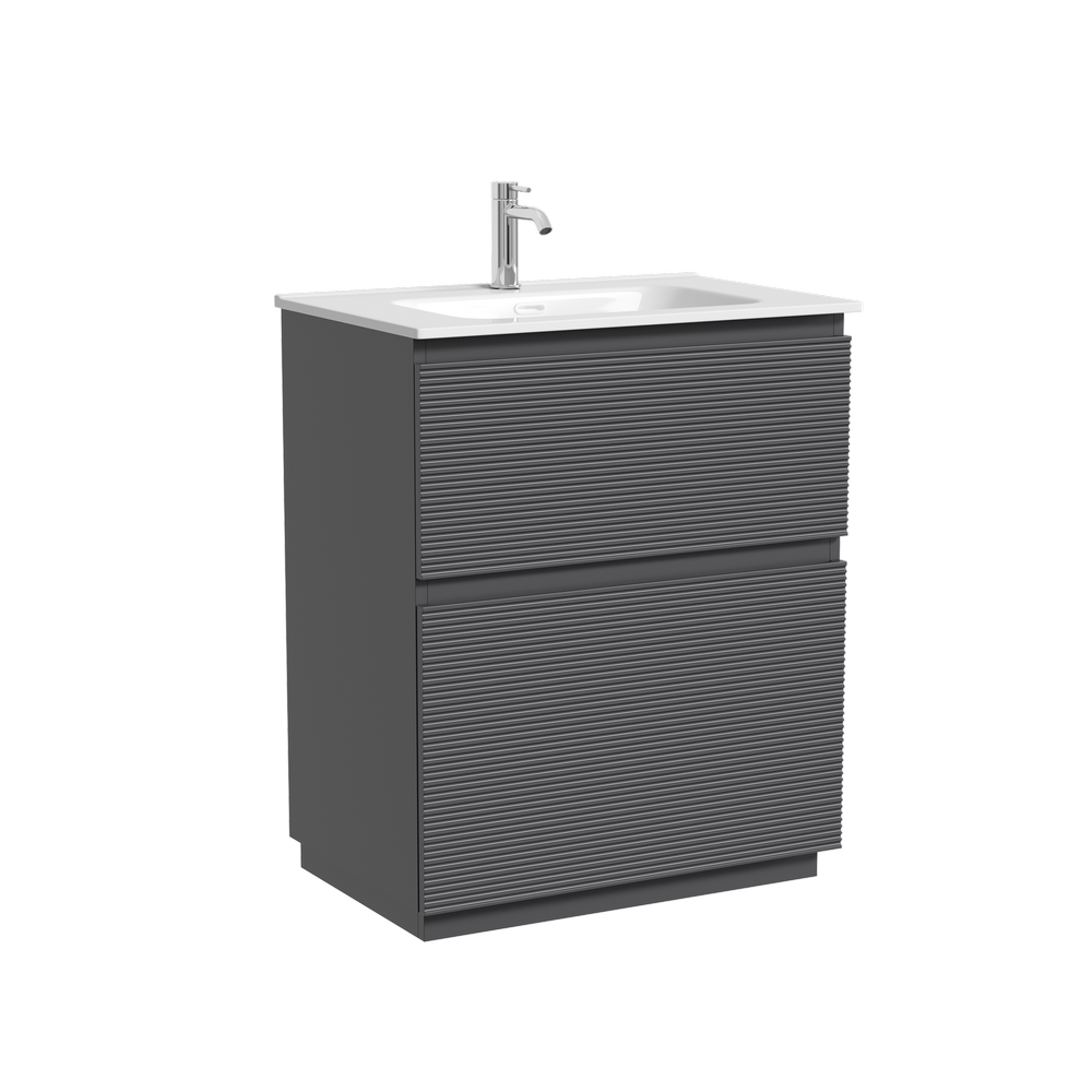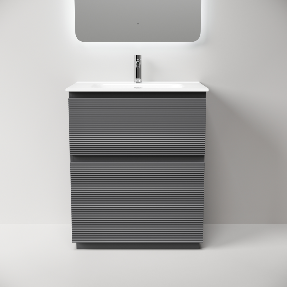 На изображении тумба Folk Floor представлена с зеркалом RAY, смесителем из коллекции ETNA и раковиной Element CN7007