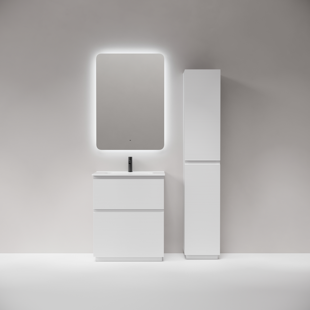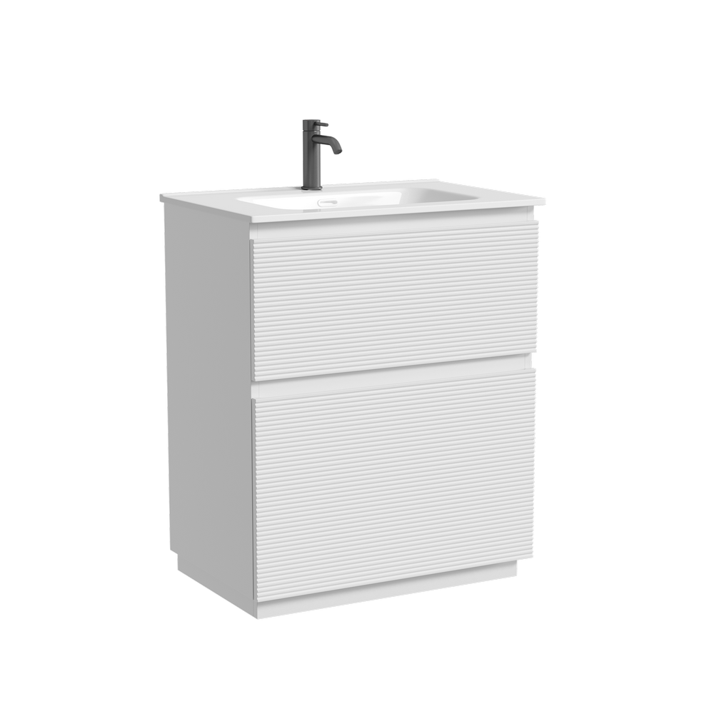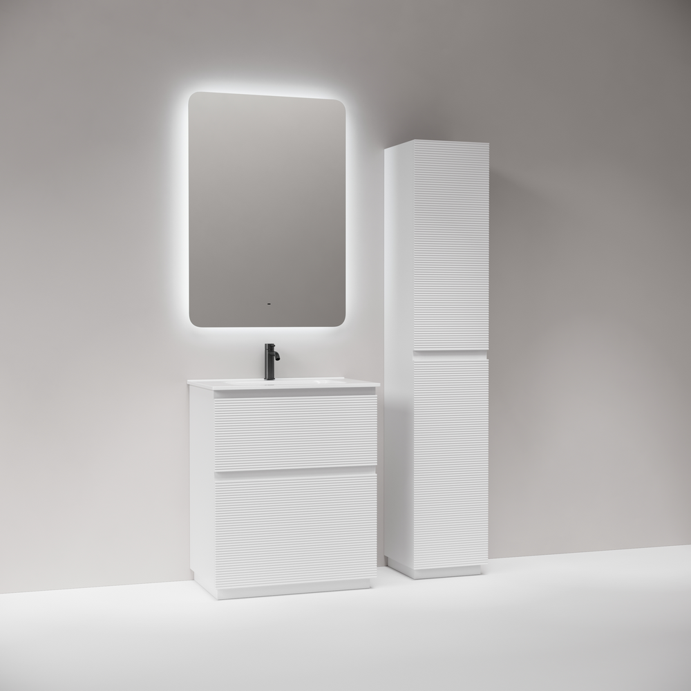 На изображении тумба Folk Floor представлена с зеркалом RAY, смесителем из коллекции ETNA и раковиной Element CN7007