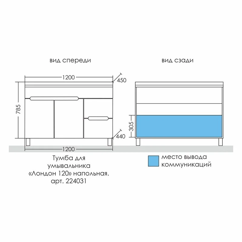 —Тумба под раковину СанТа Лондон 224031 120х40 напольная цвет белый