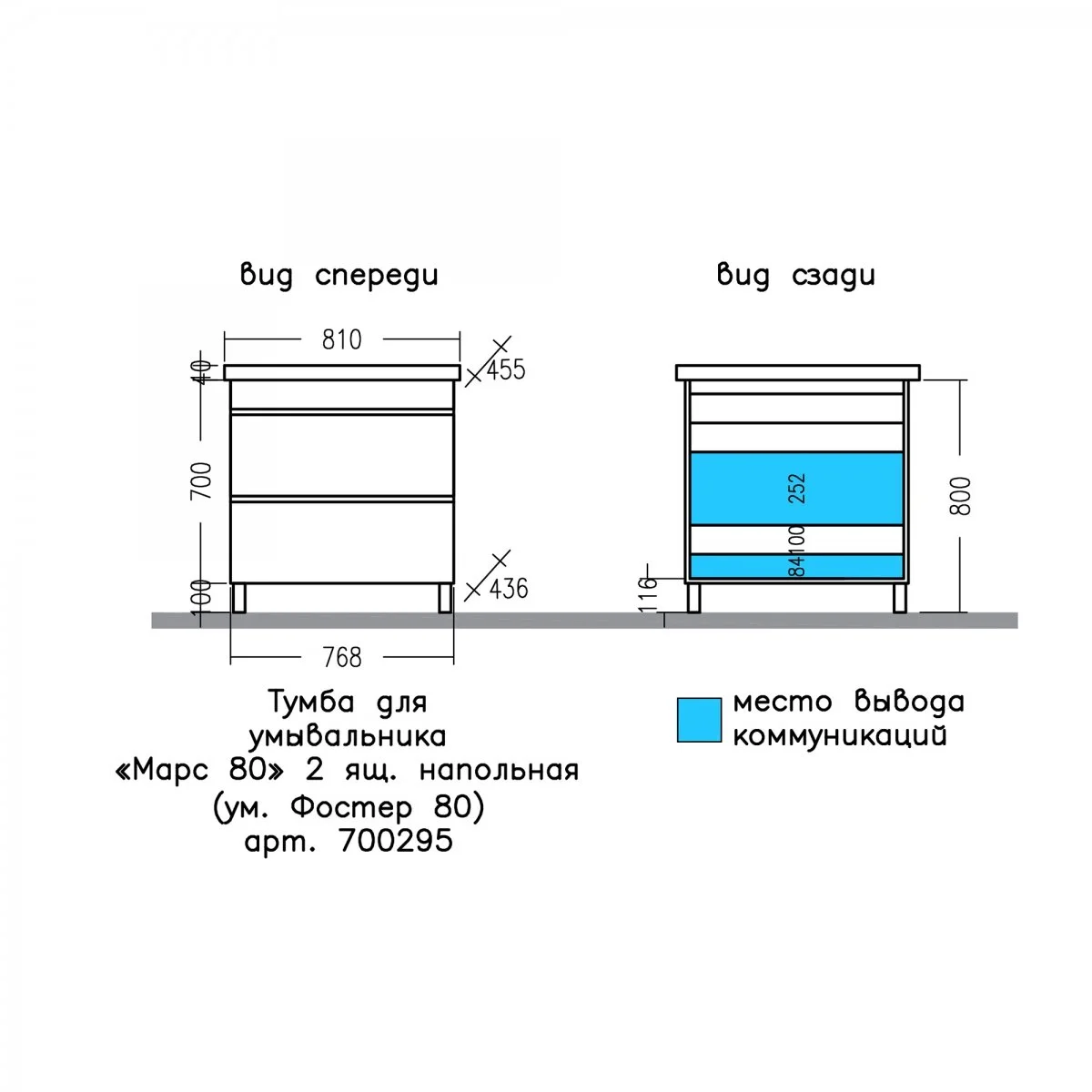 —Тумба под раковину СанТа Марс 700295 80х40 напольная цвет белый