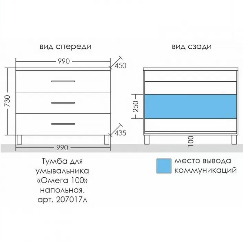 —Тумба под раковину СанТа Омега 207017 100х40 напольная цвет белый