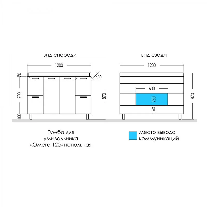—Тумба под раковину СанТа Омега 207043 120х50 напольная цвет белый