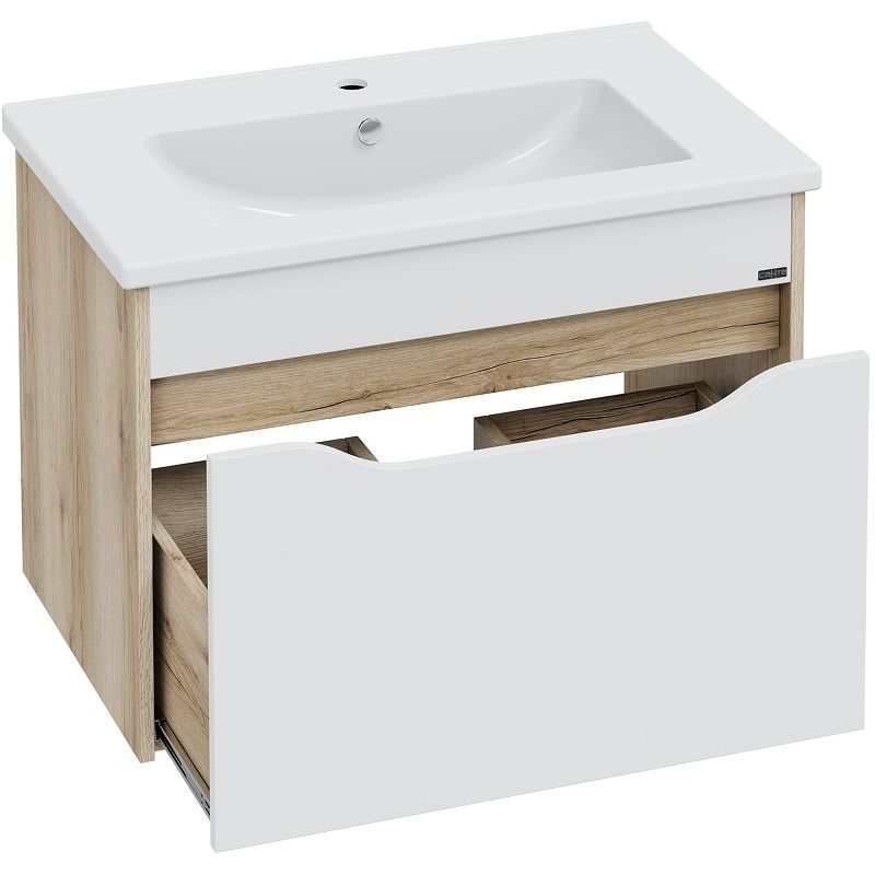 —Тумба под раковину СанТа Сатурн 700371 80х50 подвесная цвет белый/коричневый
