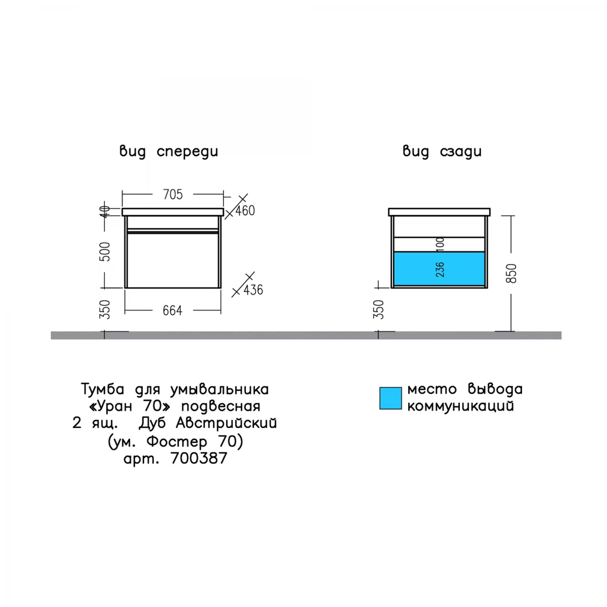 —Тумба под раковину СанТа Уран 700387 70х40 подвесная цвет коричневый