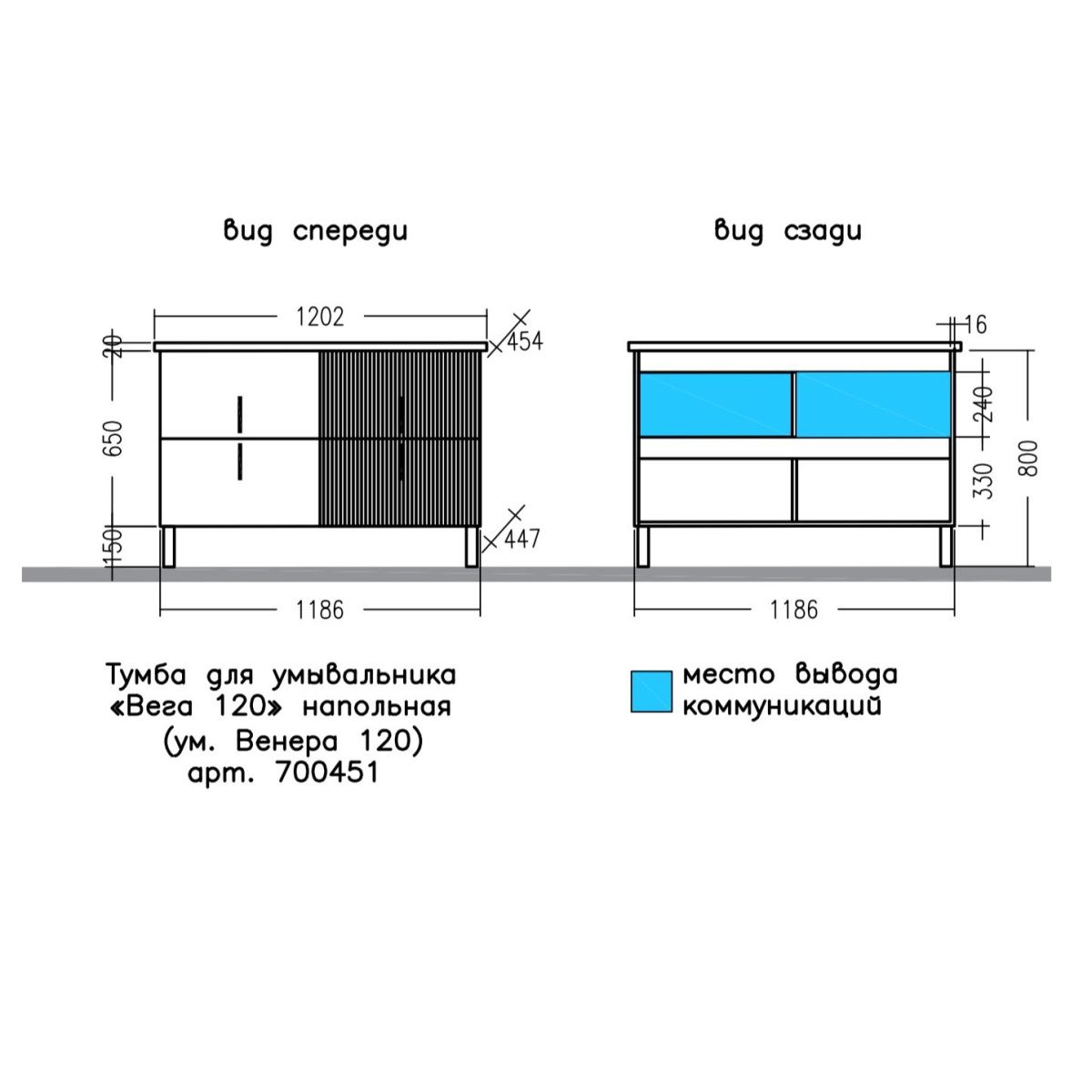 —Тумба под раковину СанТа Вега 700451 120х40 напольная цвет белый